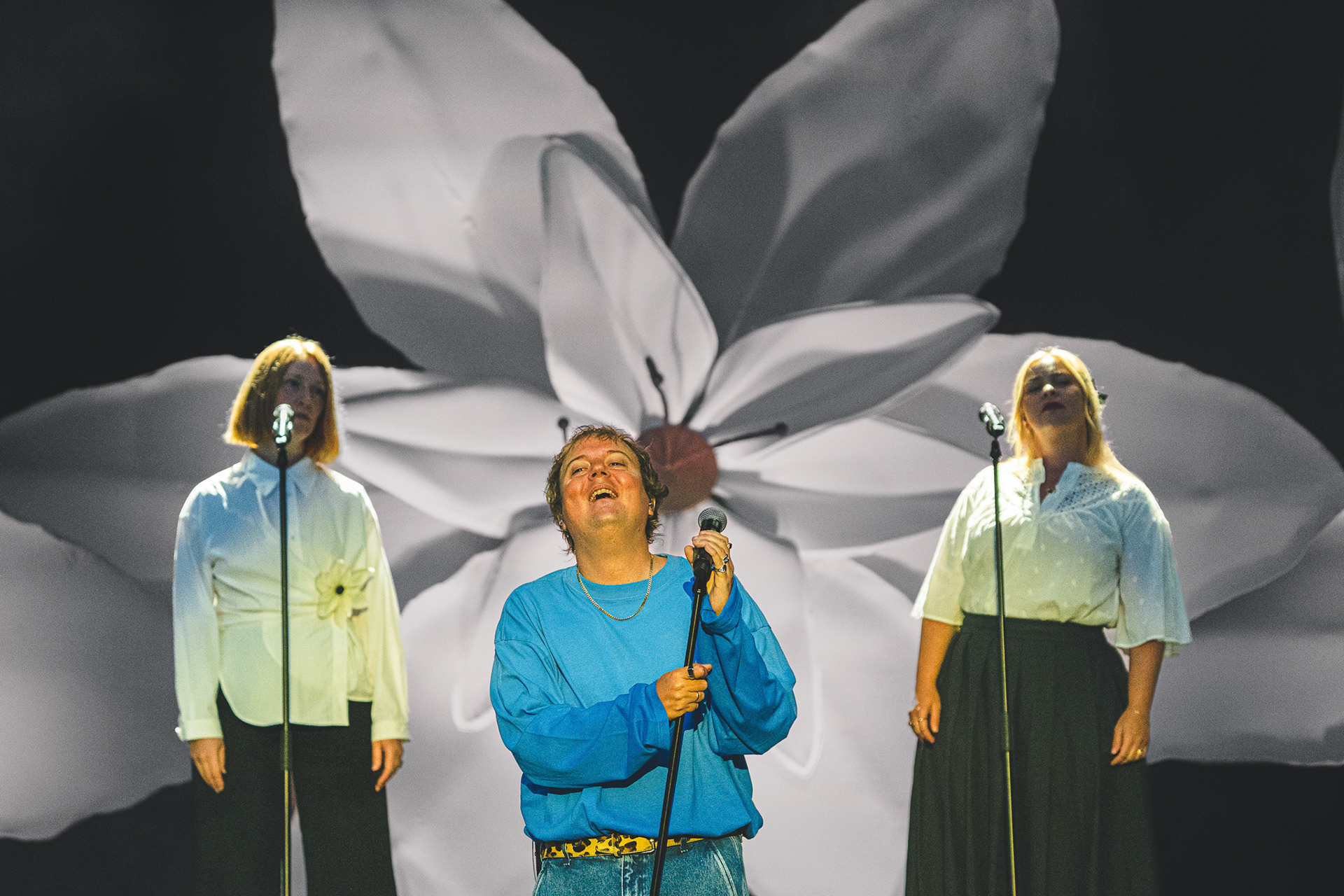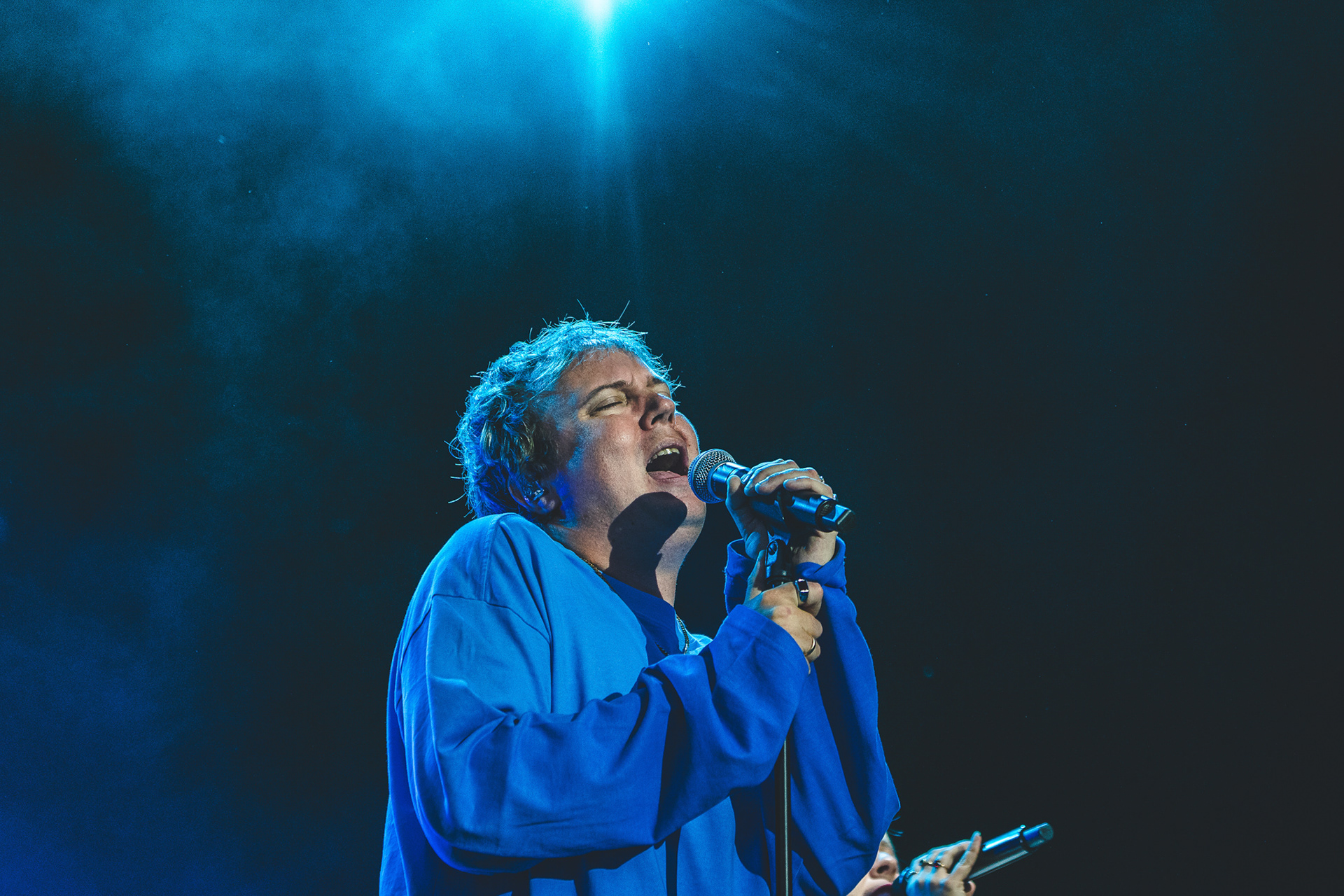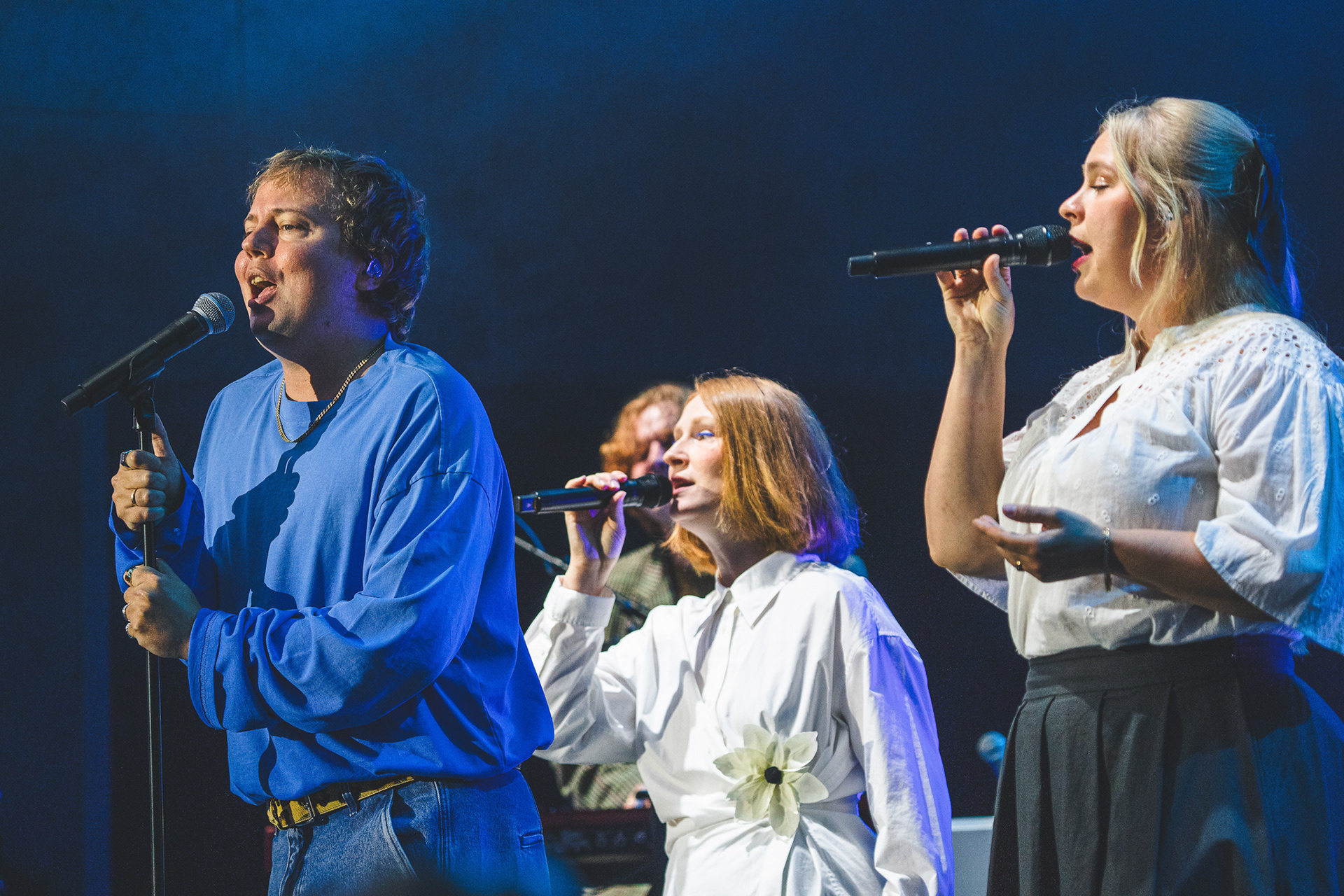 Under fællesnummeret Stor mand, hvor Tobias Rahim medvirker på indspilningen, dukkede en overraskelse op - en dukke, der skulle fungere som stand-in for Rahim. Det blev modtaget med grin og klapsalver, og viser netop dét, som Odbjerg er god til: at balancere det ærlige og det skæve.