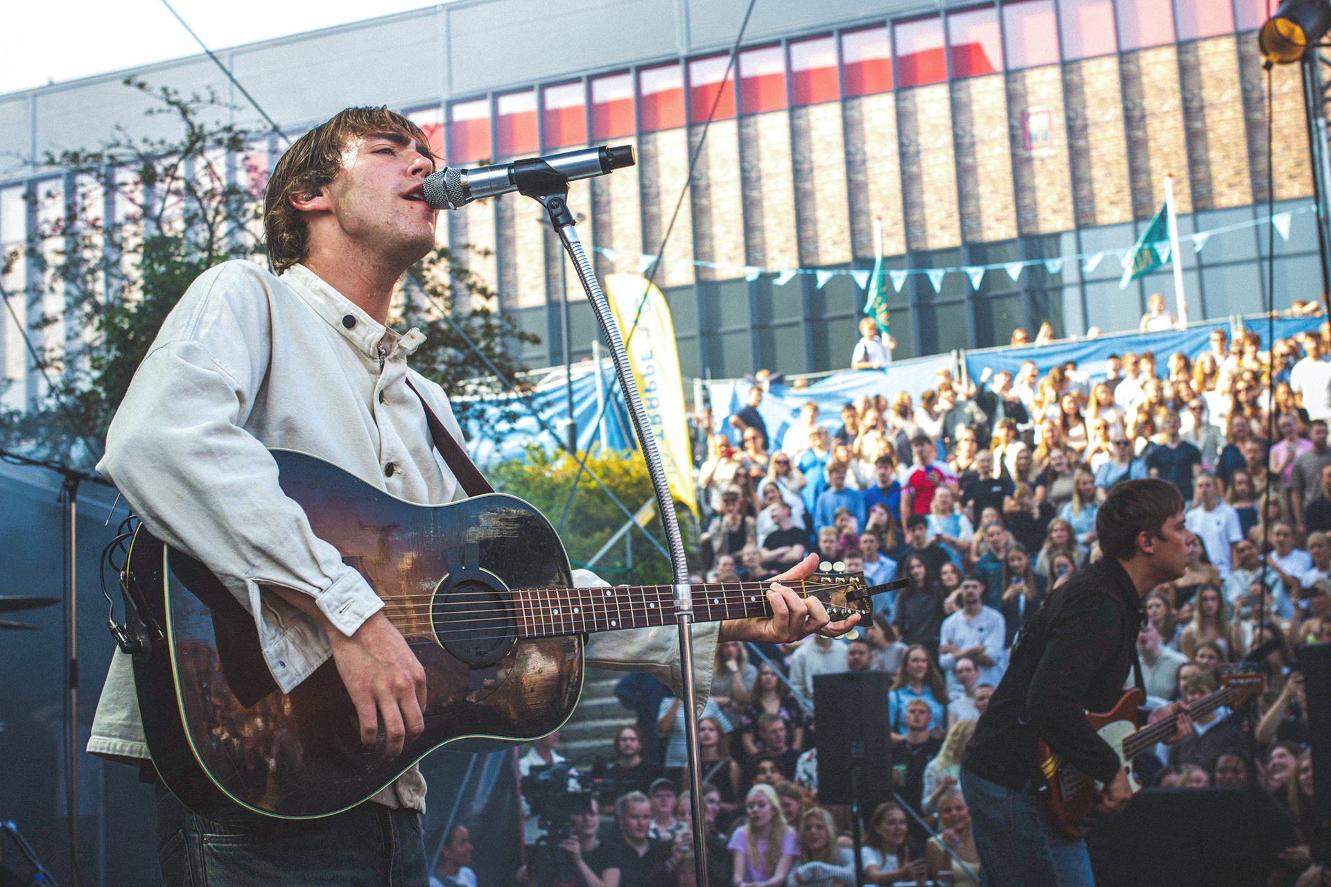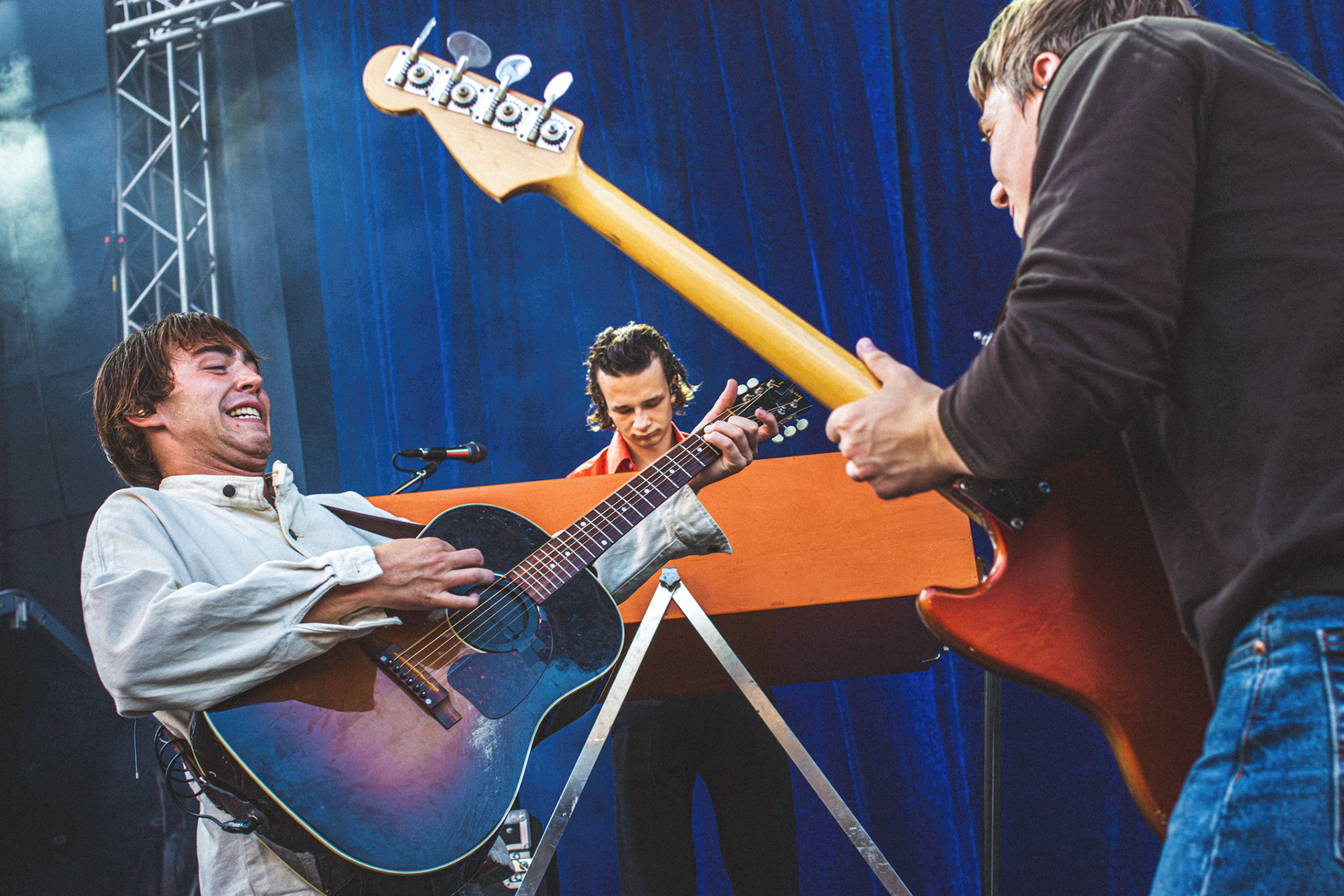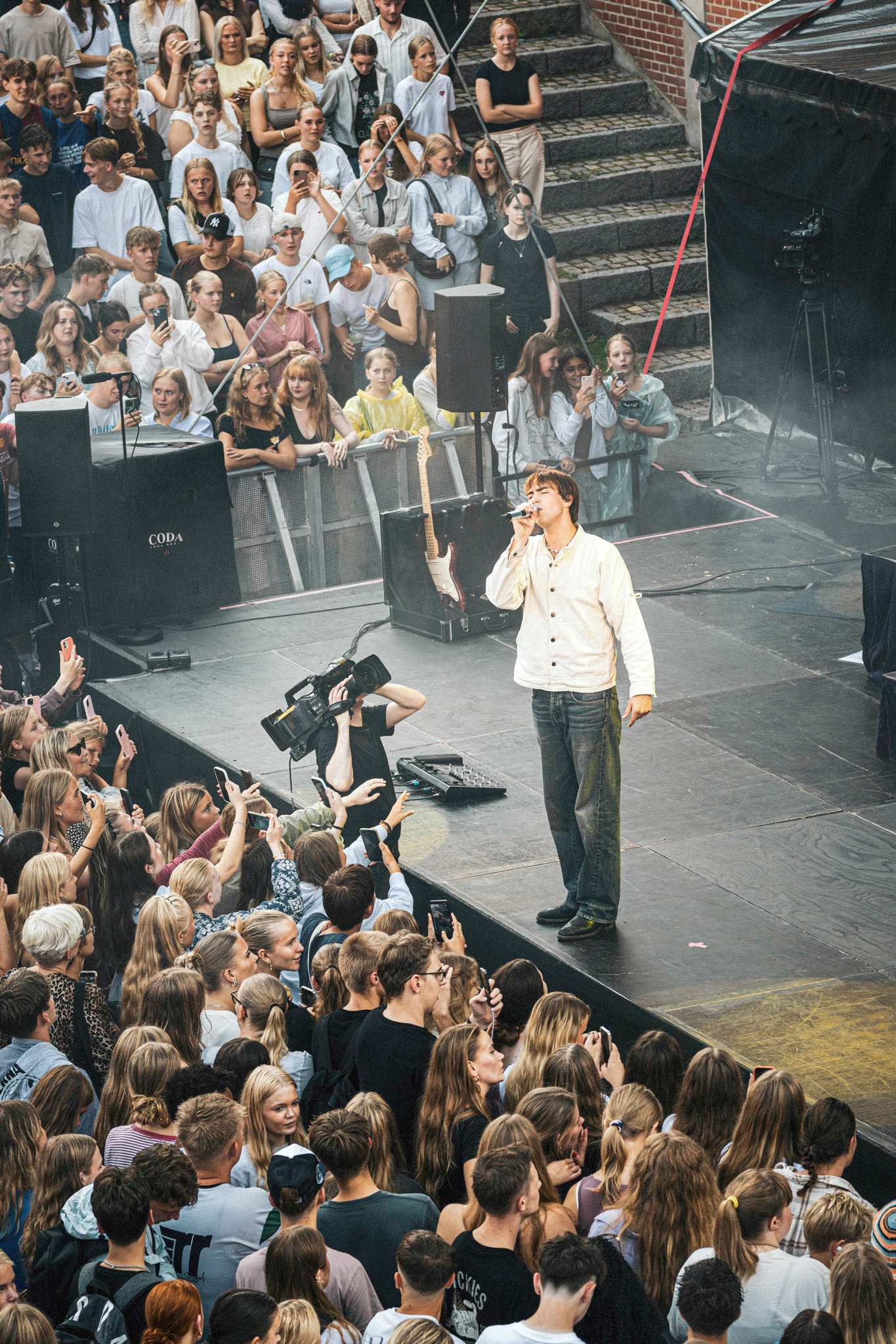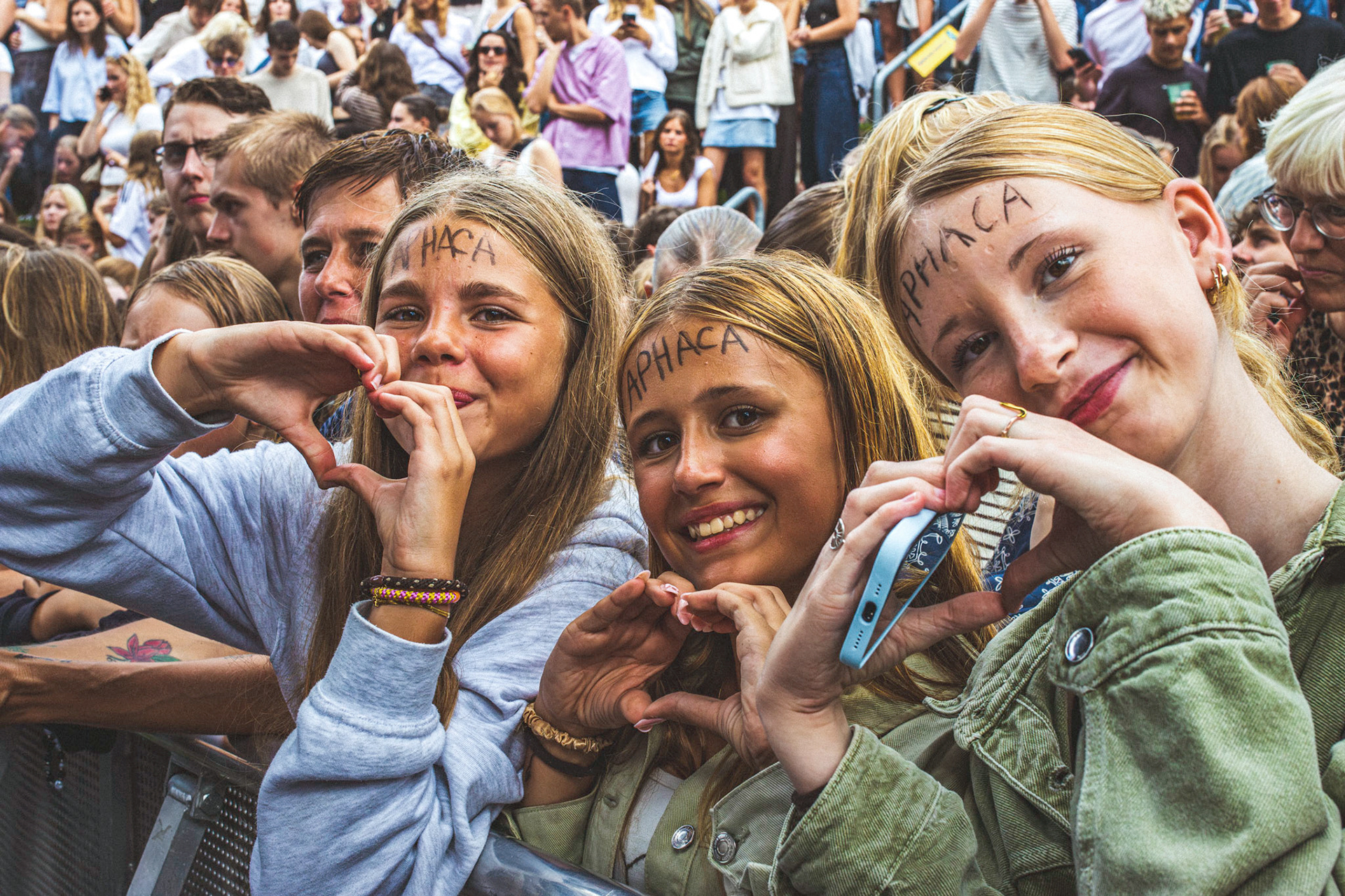 Når man taler om bands på himmelflugt, er APHACA lige nu blandt de klareste stjerner på musikscenen. Sommeren 2025 har været én lang sejrsrække for bandet, der flere steder har måttet lukke for indgangen til deres koncerter, fordi tusindvis af mennesker ville opleve deres musik. Men sent torsdag eftermiddag på Værkets Amfiscenen under Randers Festuge blev det hele kogt ned til noget mere intimt – og netop det gjorde oplevelsen helt særlig.