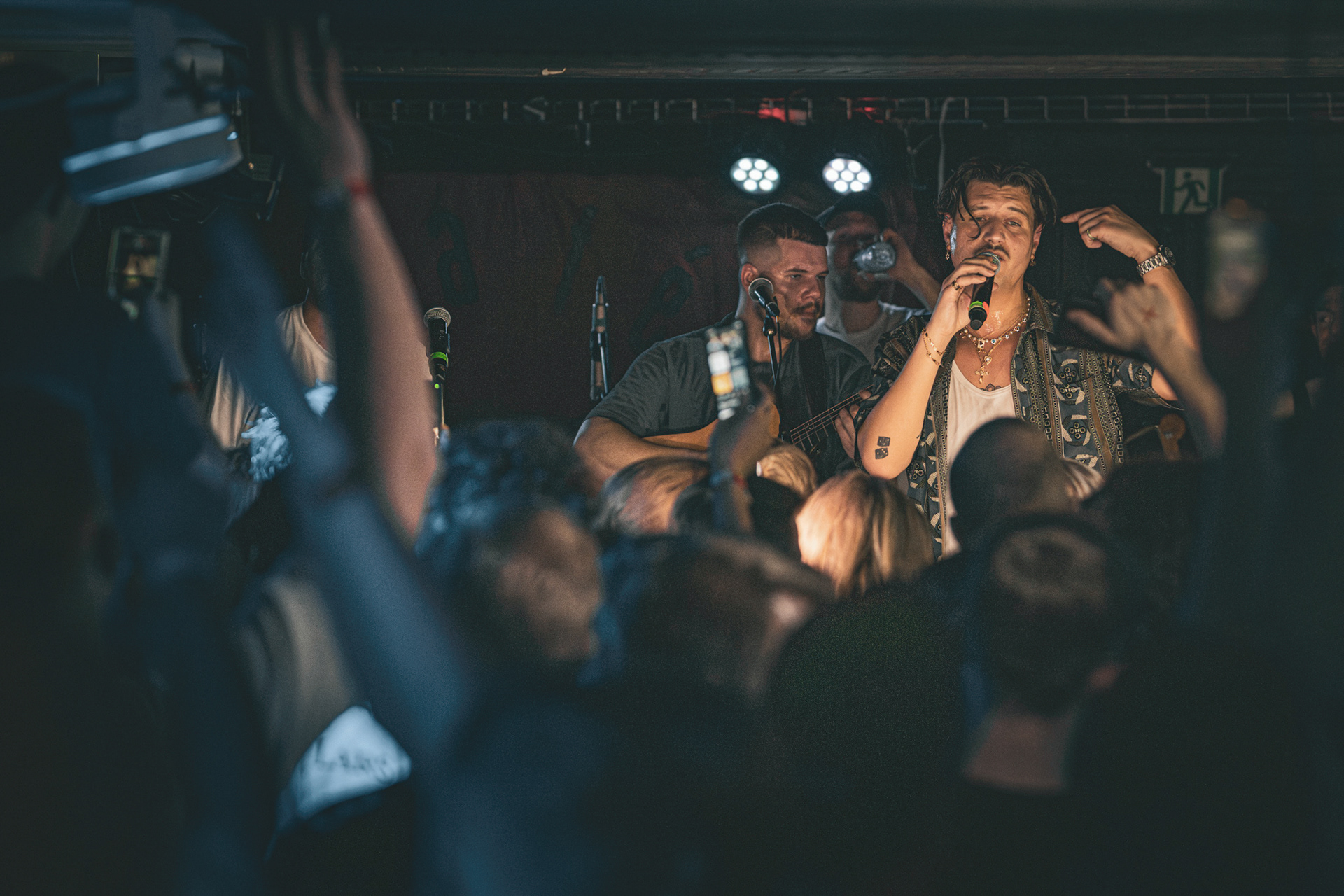 Numre som "Kaffe & Kærlighed" og "Iben Hjejle" udløste højlydt fællessang, mens "Vågn Op" satte en mere eftertænksom stemning i rummet. Publikum havde tydeligvis lyttet med derhjemme – og var kommet for at synge med.