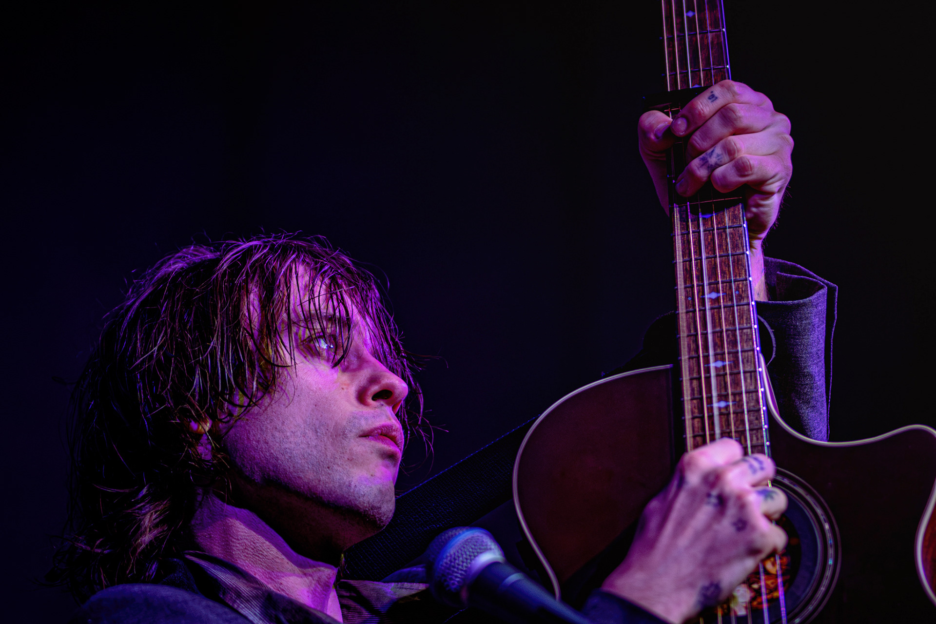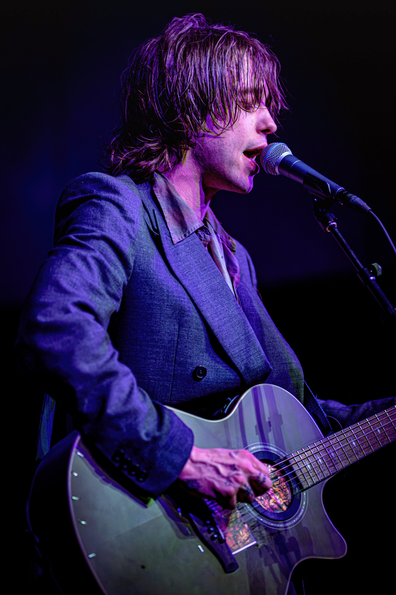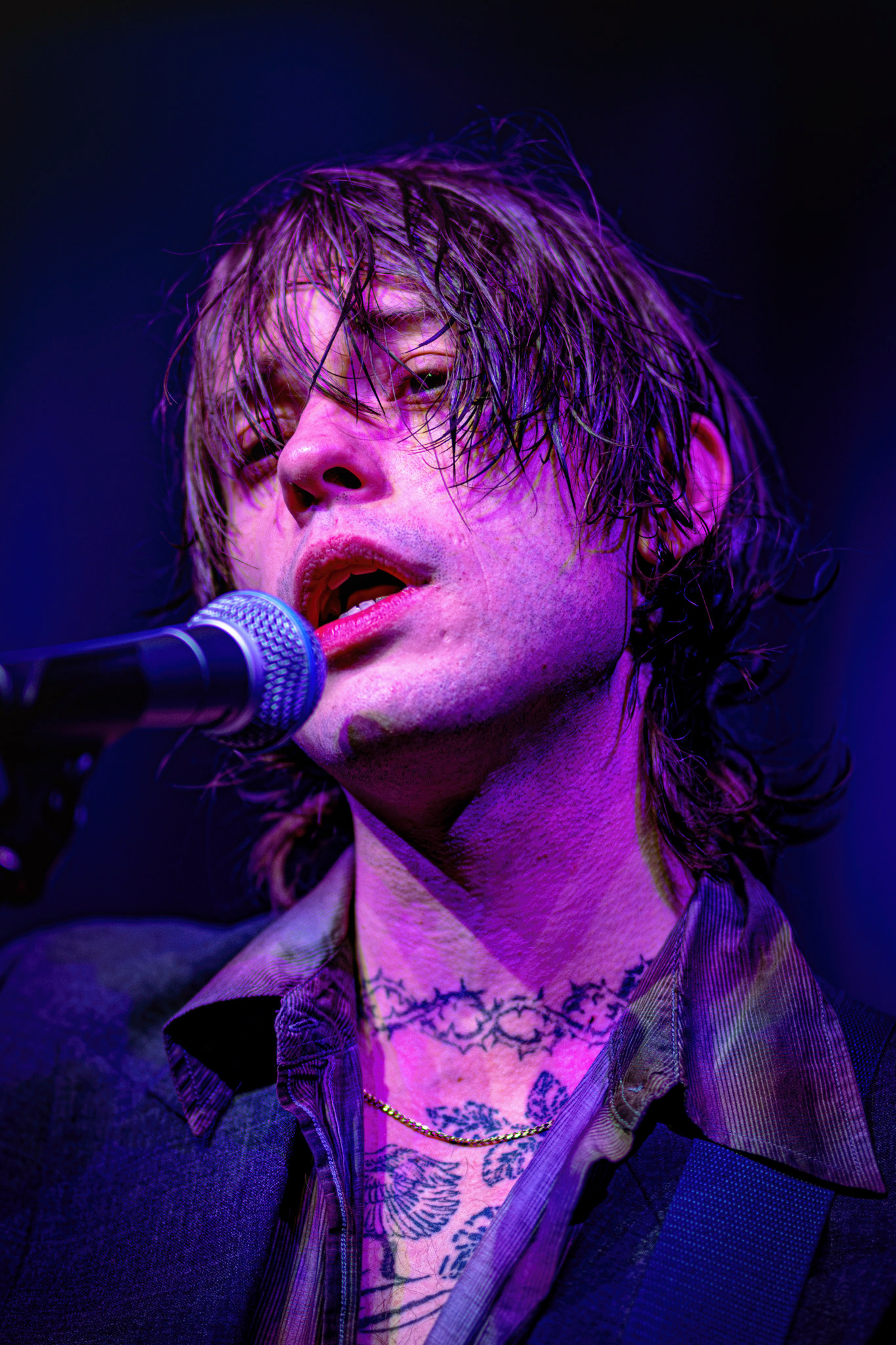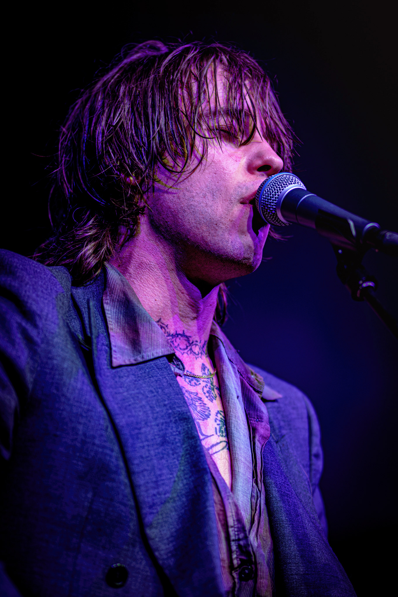 Med sin karakteristiske vokal – en ru, næsten tungsindig stemme, der bevæger sig i grænselandet mellem rock, spoken word og dansk melankoli – greb han salen og gav slip. Der var stille i rummet, men det var ikke en tom stilhed – det var koncentreret, næsten hellig.