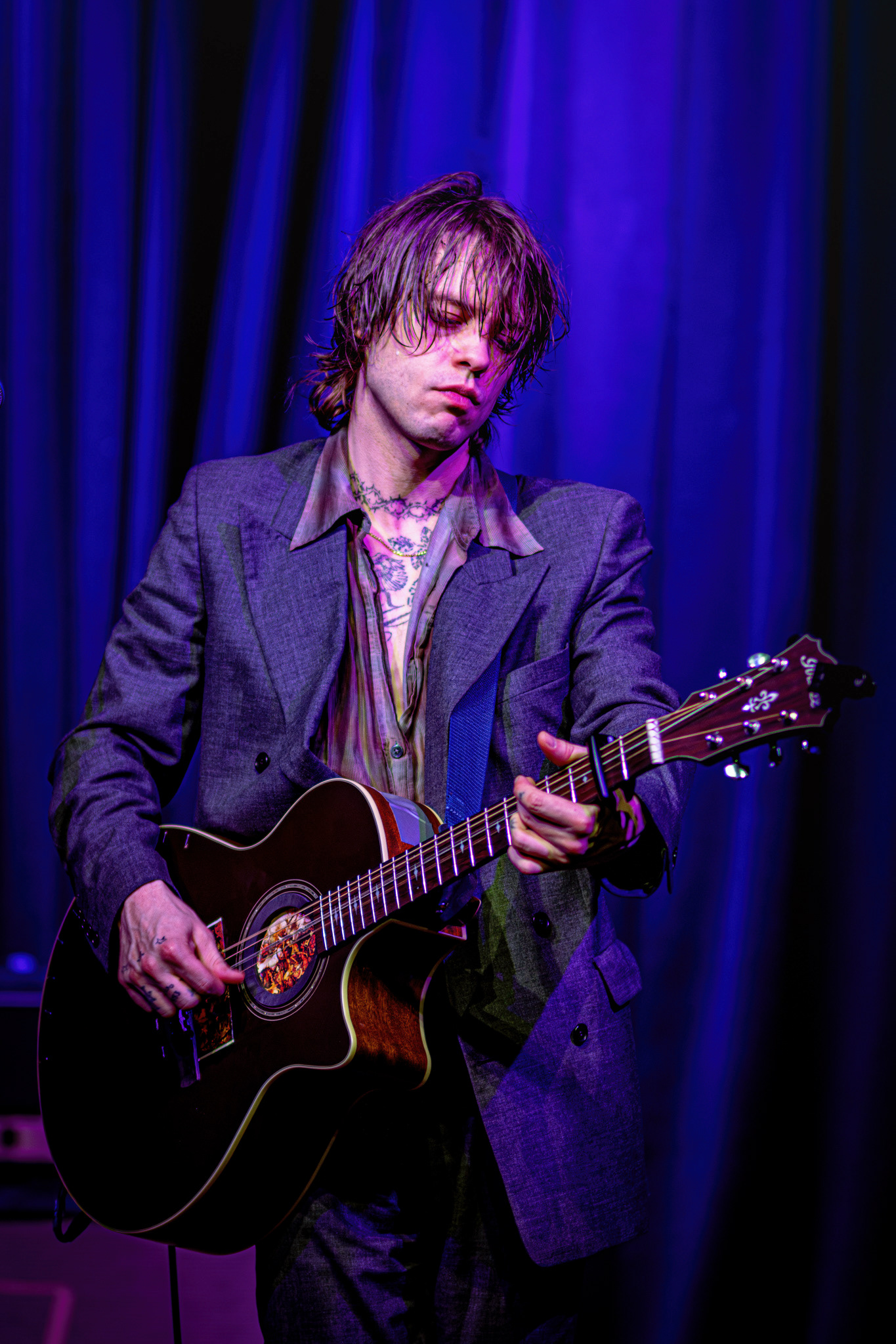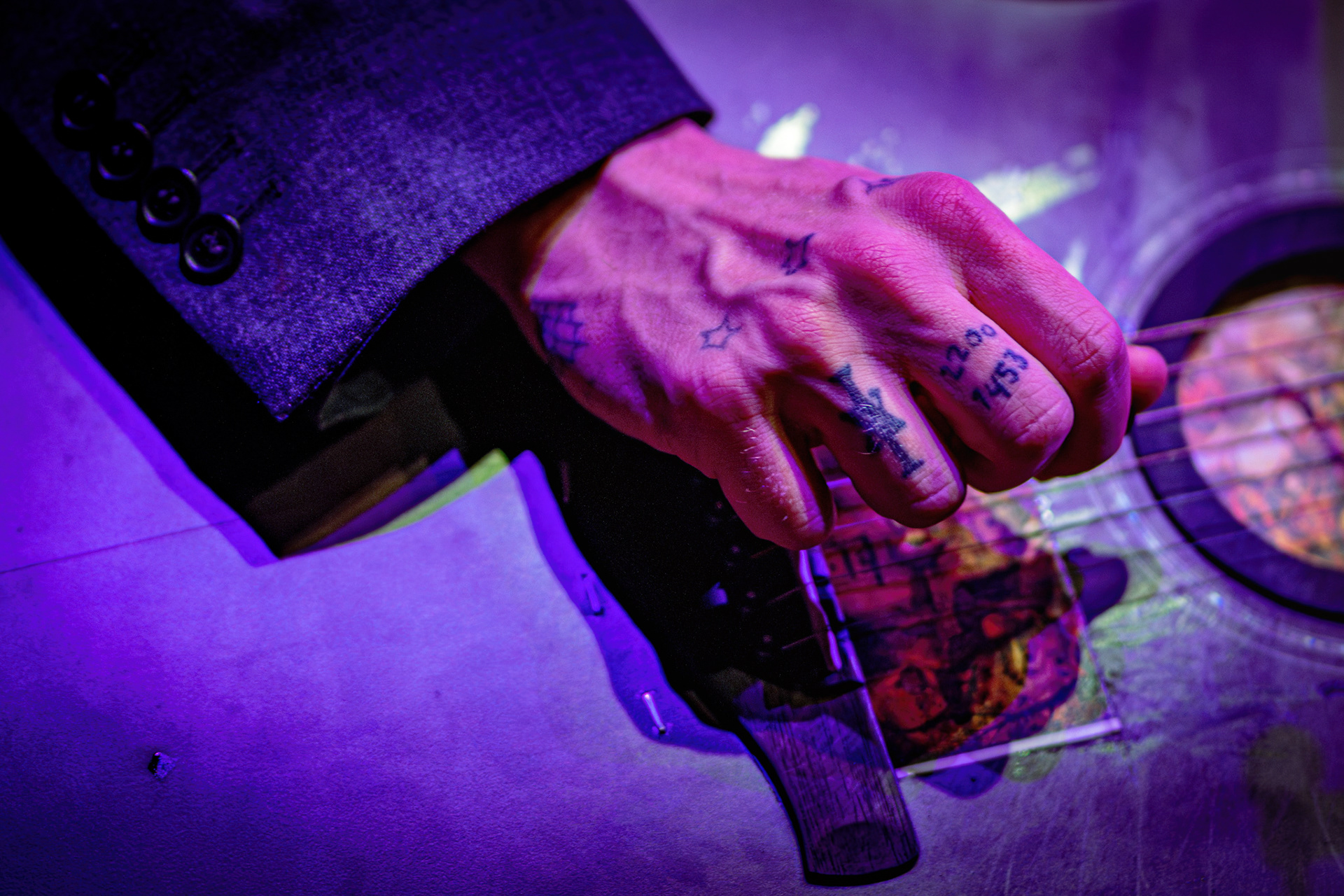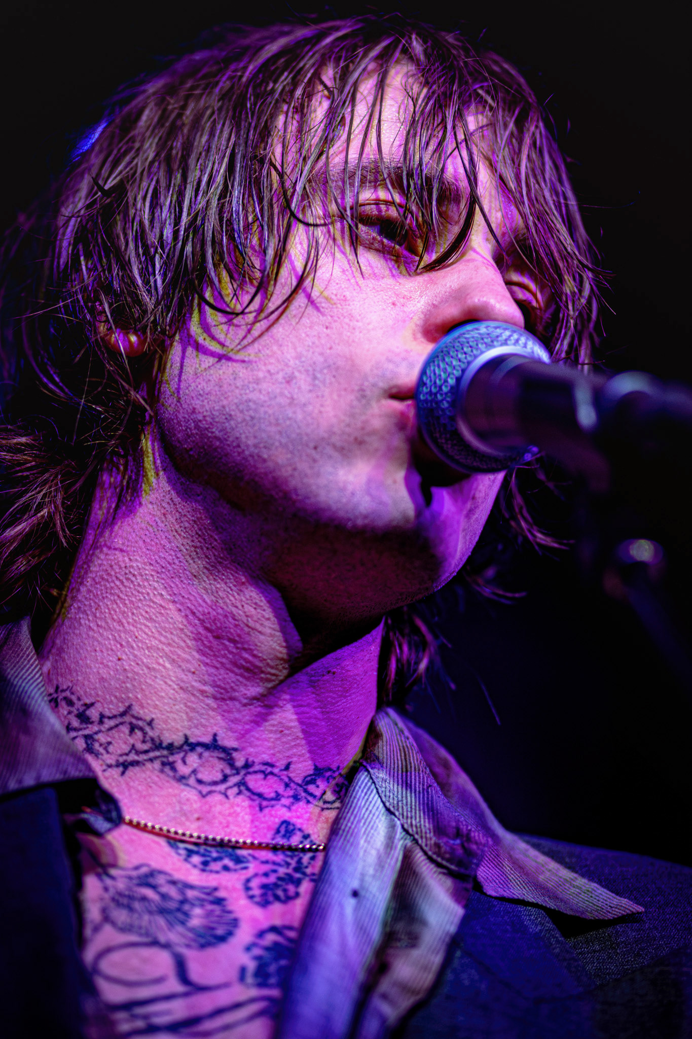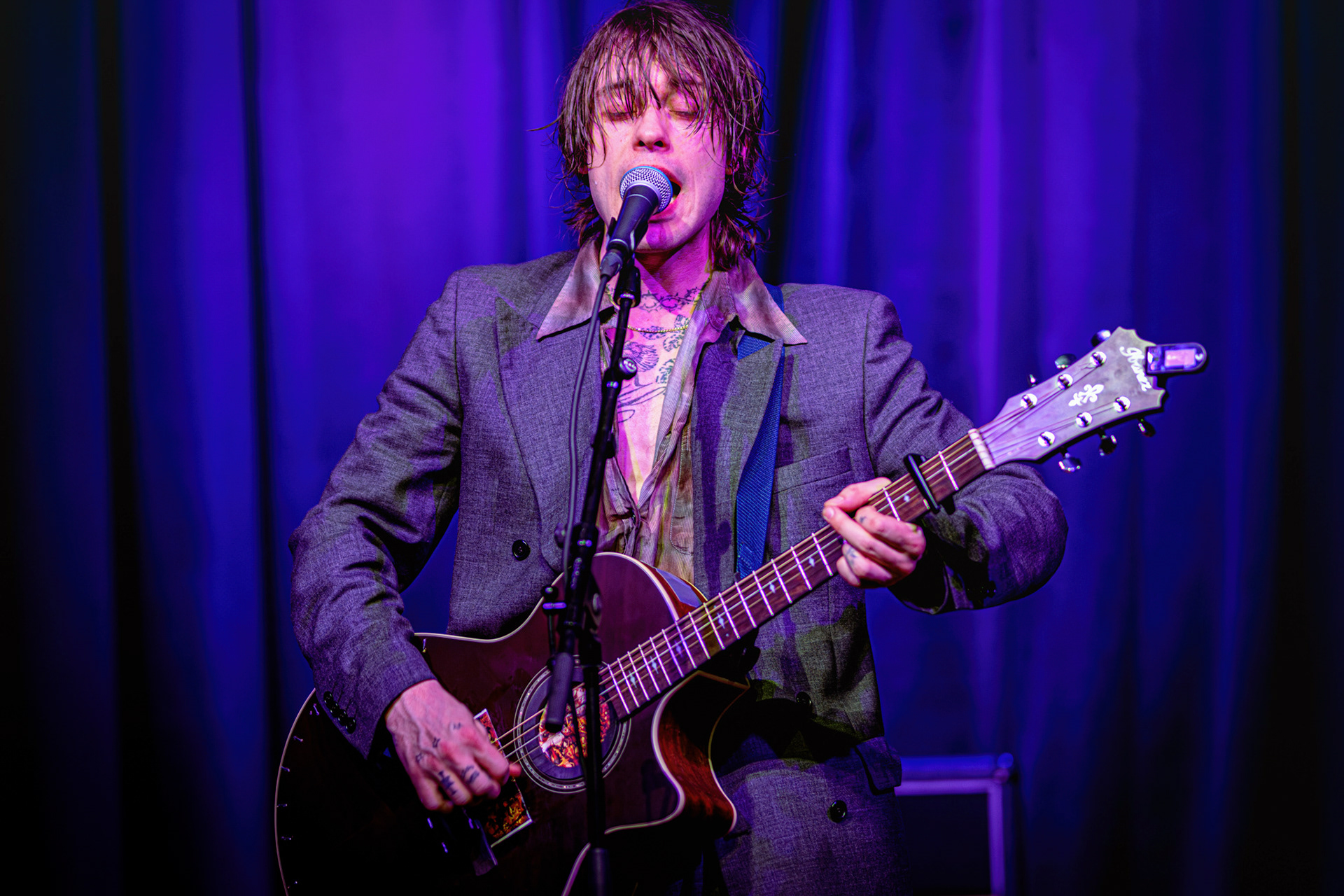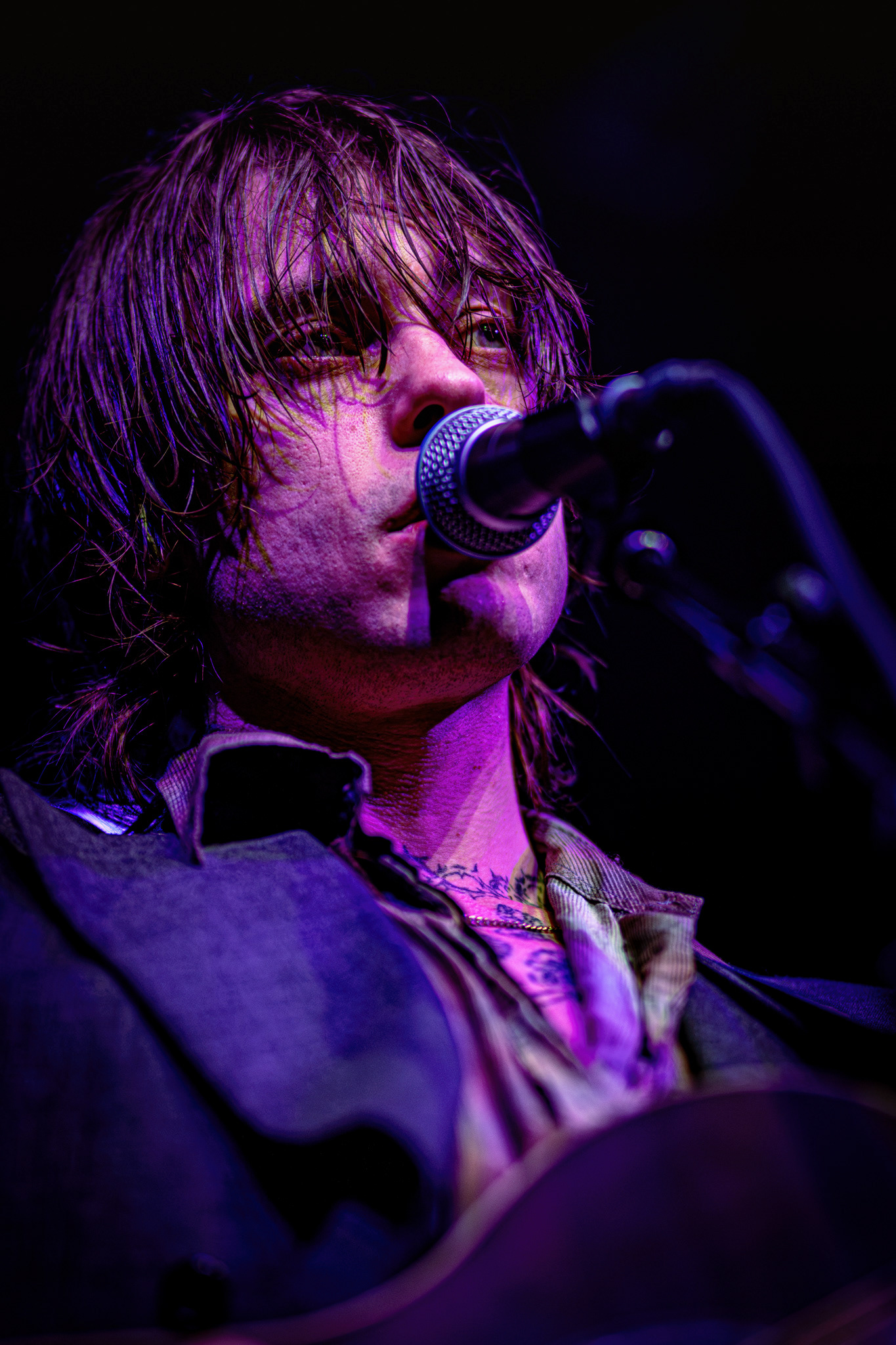 Med sin karakteristiske vokal – en ru, næsten tungsindig stemme, der bevæger sig i grænselandet mellem rock, spoken word og dansk melankoli – greb han salen og gav slip. Der var stille i rummet, men det var ikke en tom stilhed – det var koncentreret, næsten hellig.