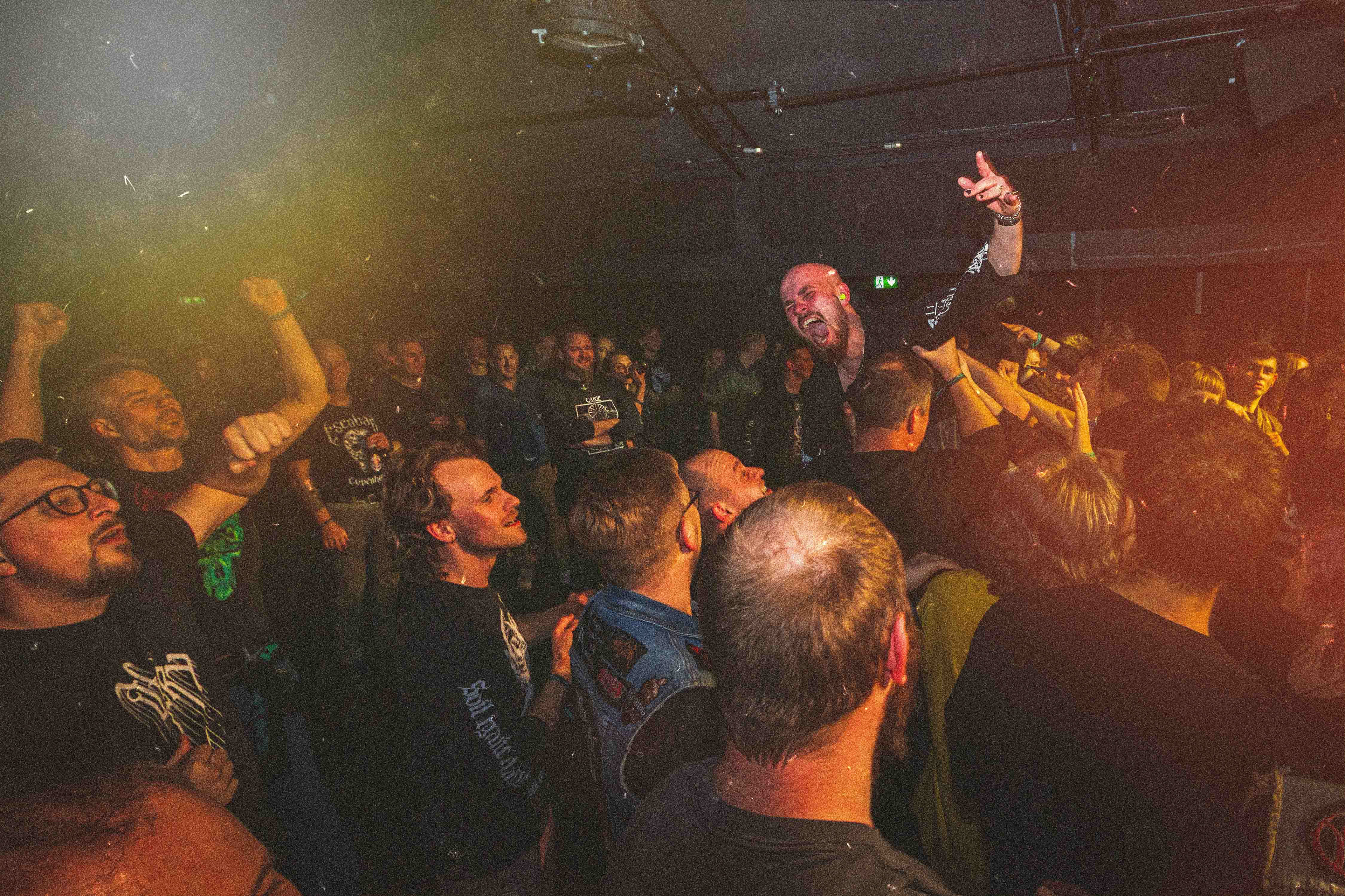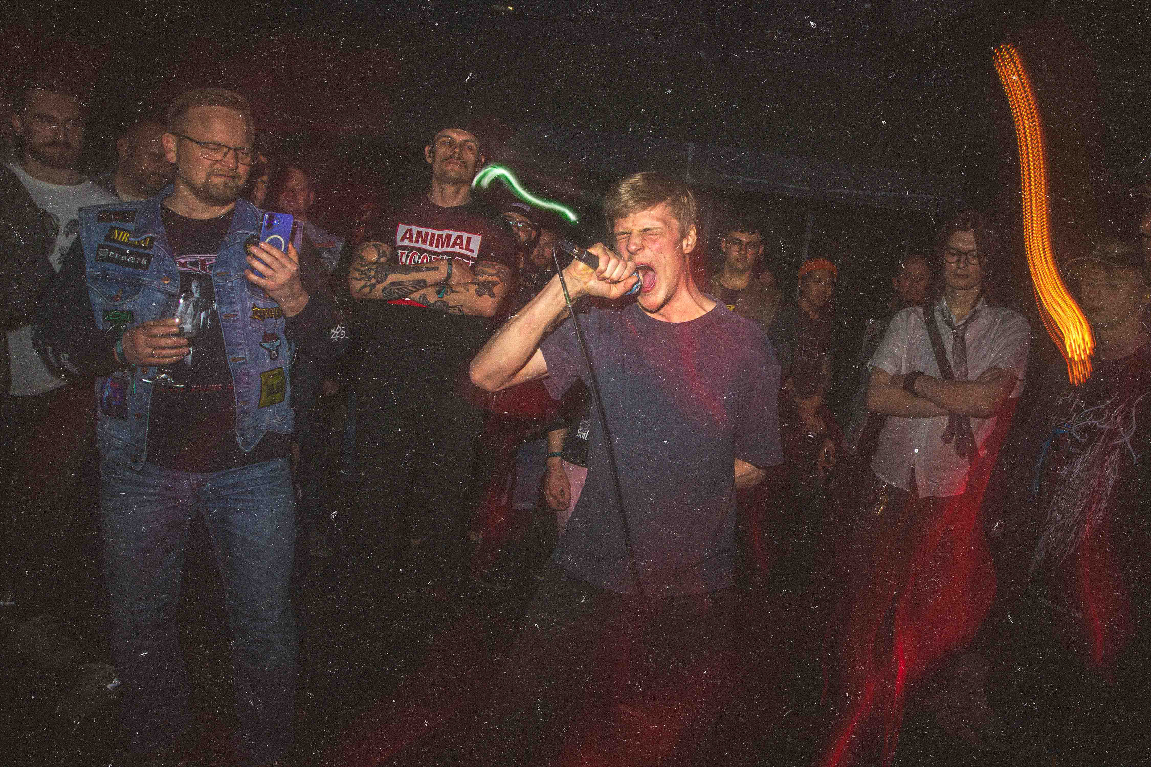 Live, på Underværkets scene i Store Sal, fremstod bandet kompromisløse og intense. Publikum blev trukket helt tæt på scenen, og energien foran var mere koncentreret end kaotisk: knyttede næver, hoppende kroppe og blikke rettet stift mod bandet. Det var den type koncert, hvor man ikke nødvendigvis stagediver konstant, men i stedet mærker musikken fysisk – i brystkassen og i kæben.
