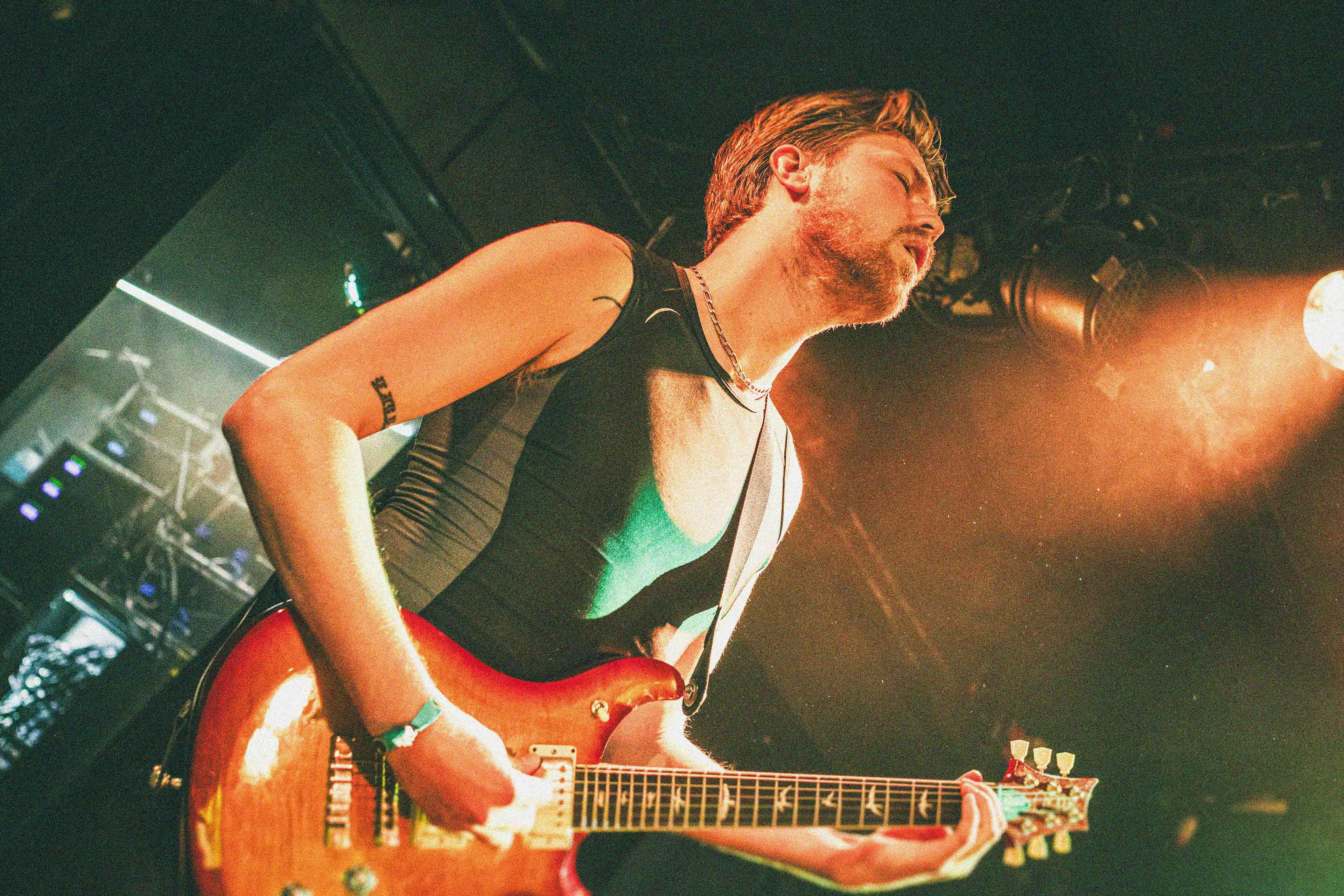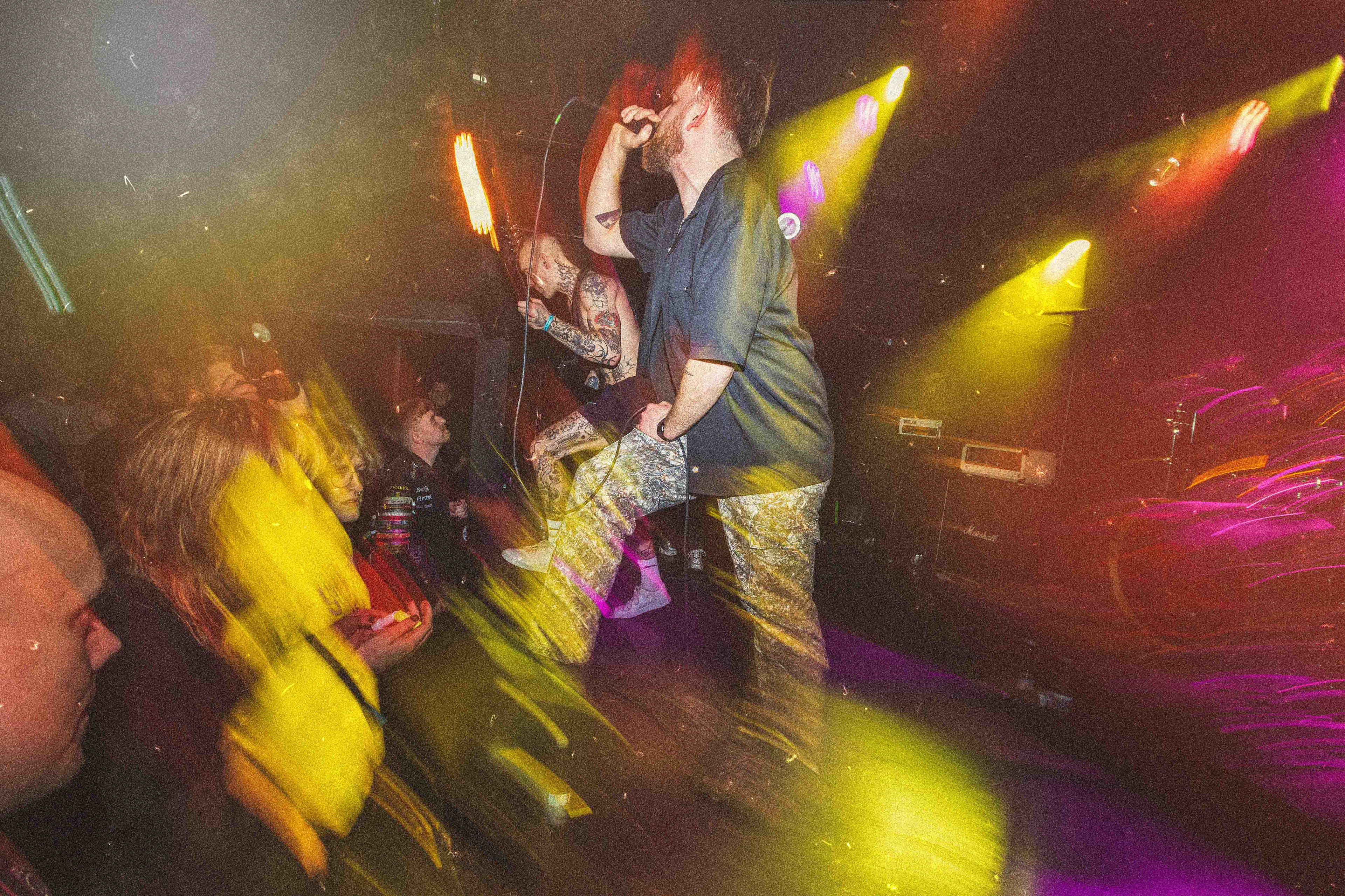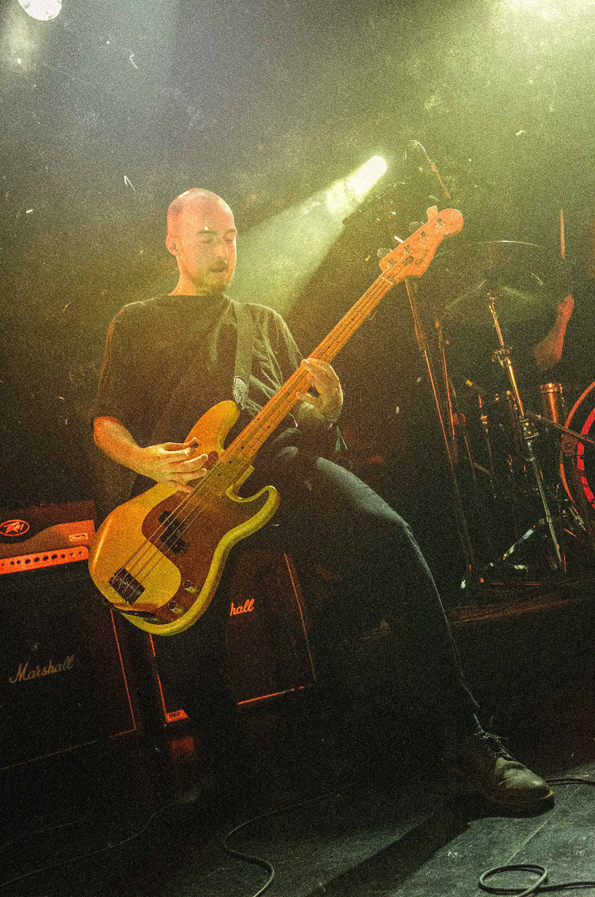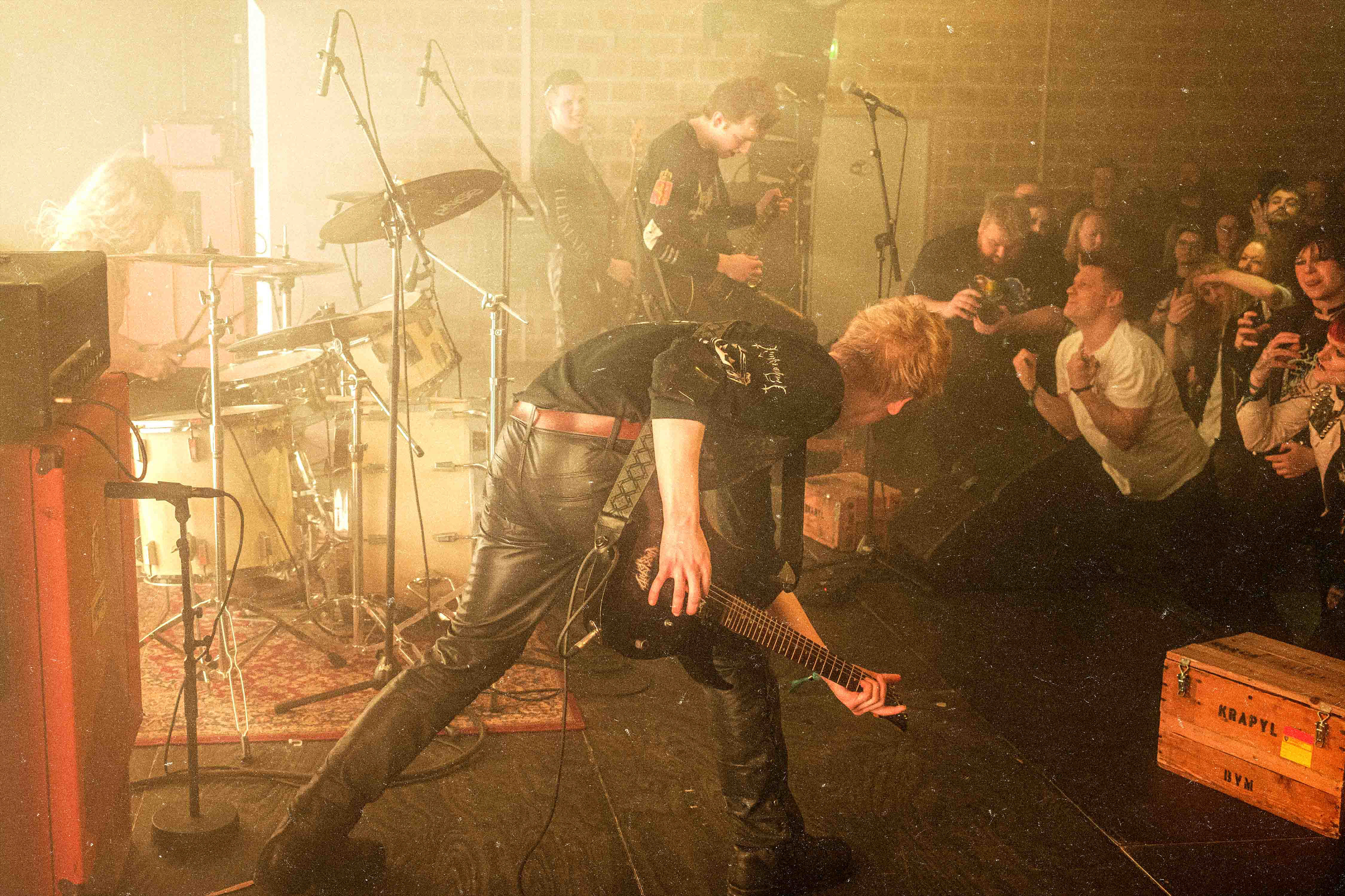 Live var de elektriske. Frontmanden bevægede sig konstant i spændingsfeltet mellem scene og publikum, og kontakten var øjeblikkelig og ægte. Man kunne mærke, at bandet nød at spille – men også at de tog rummet seriøst. Publikum reagerede prompte: flere bevægede sig tættere på, hoveder nikkede, skuldre stødte sammen, og energien foran scenen voksede markant.