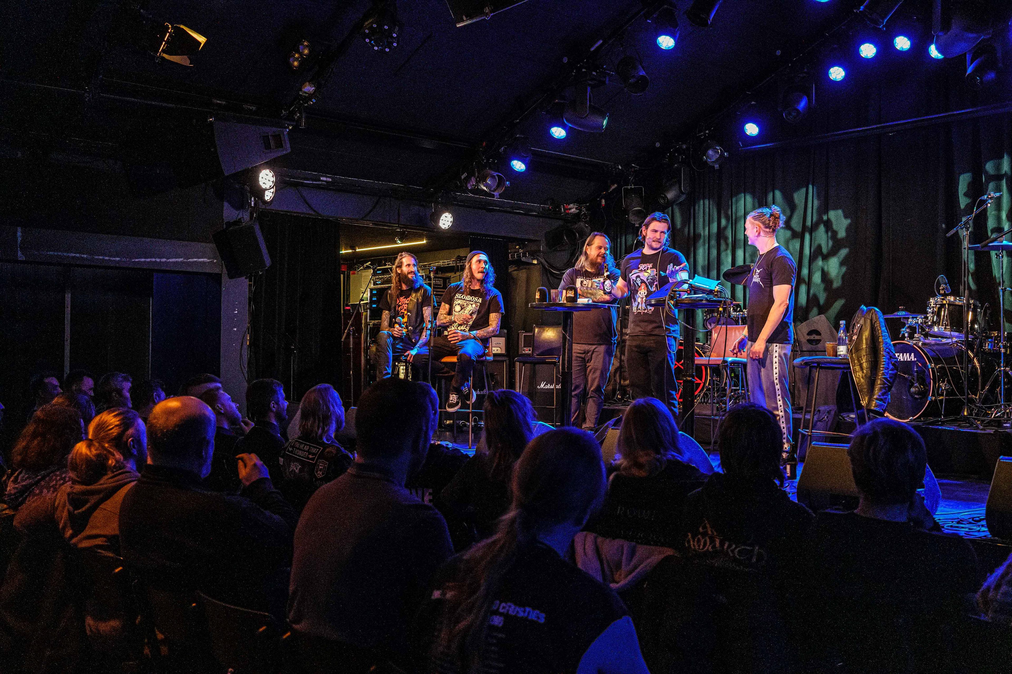 Gallows begyndte dagen med rødderne solidt plantet i metal-formidlingen. Festivalen blev sparket i gang med en live-udgave af Sort Søndag-podcasten, styret af Anders Bøtter og Jakob Trolle. Stemningen var afslappet, nørdet og fuld af kærlighed til genren – indtil meldingen kom, som sendte et kollektivt jubelbrøl gennem salen: