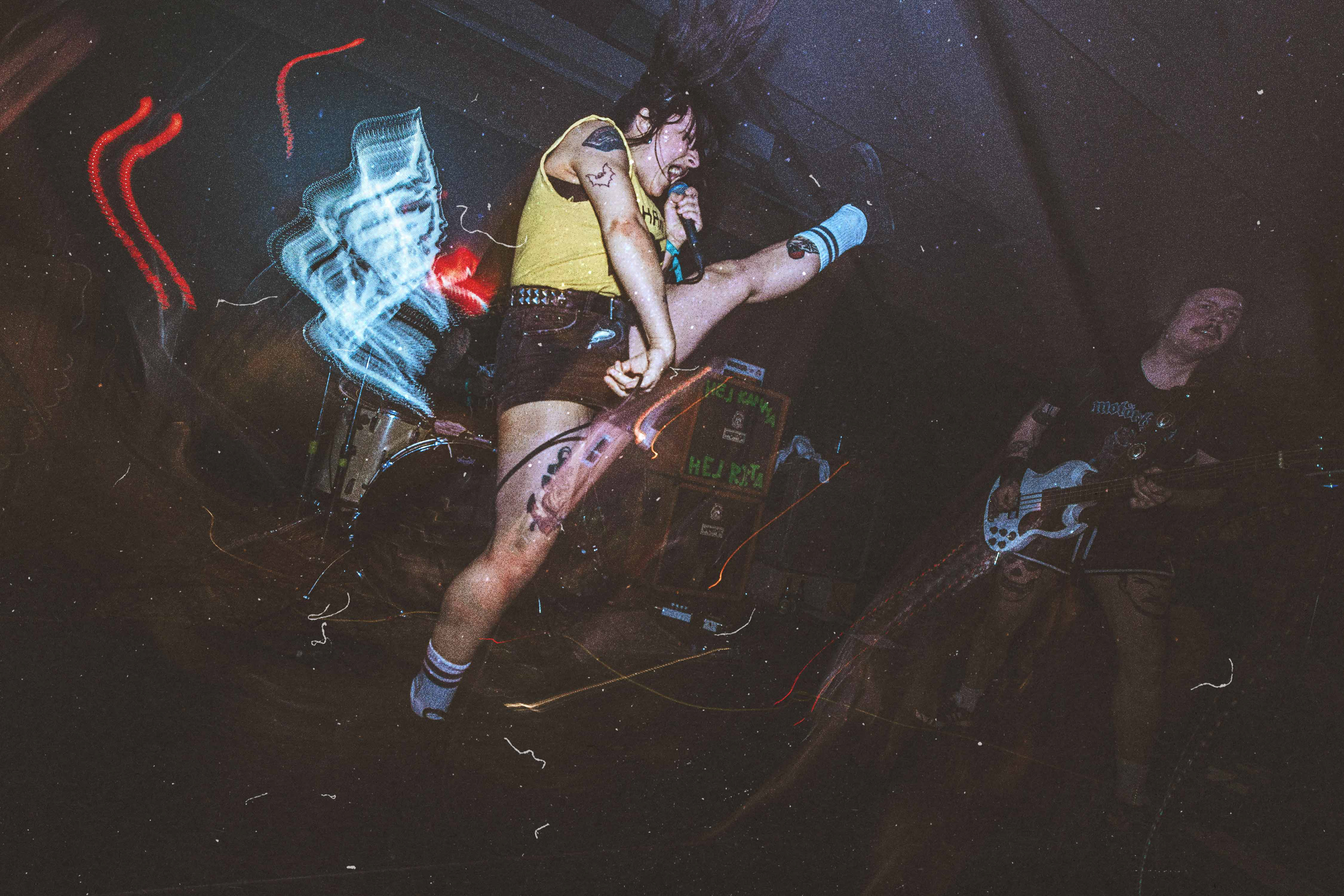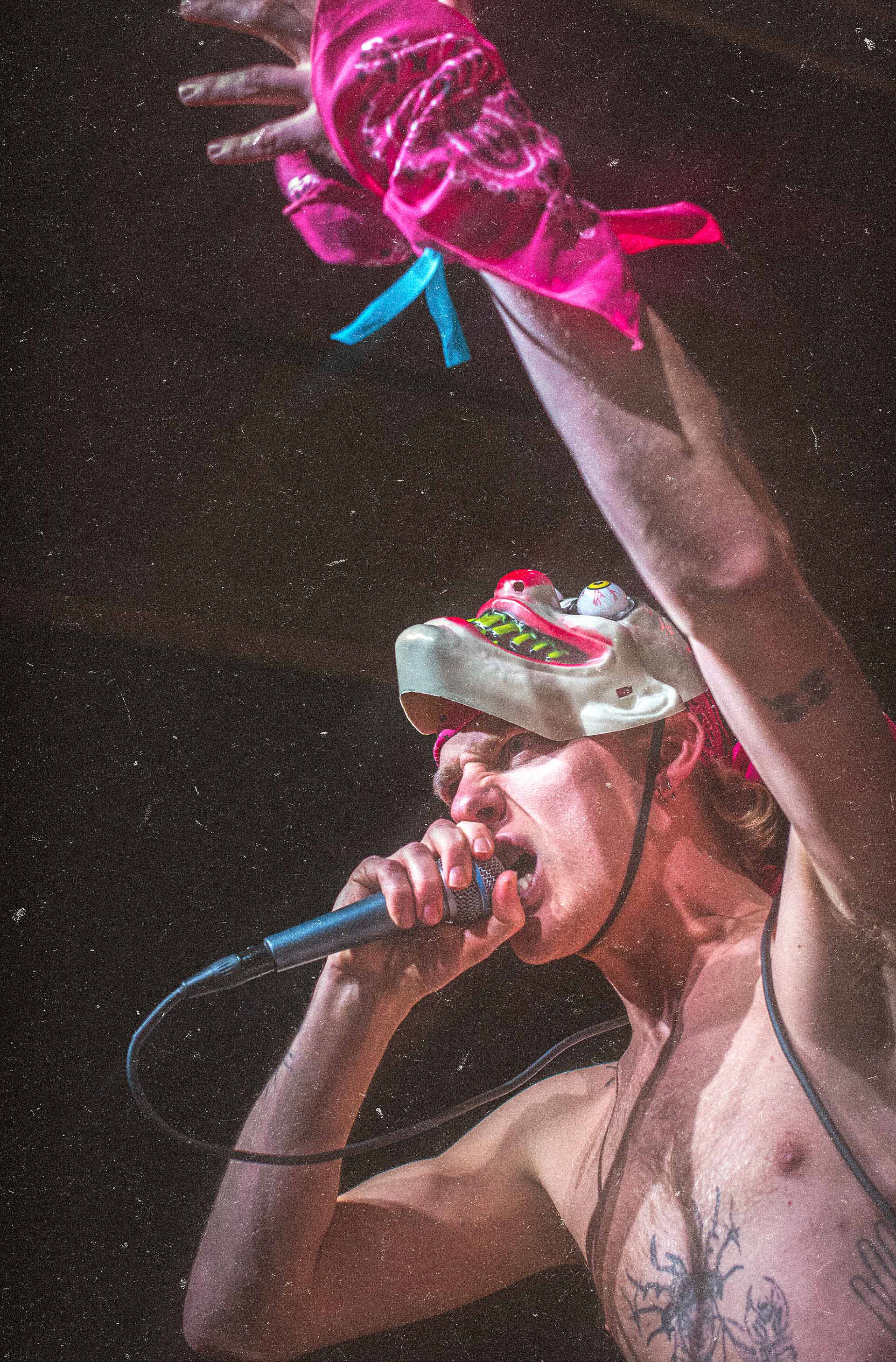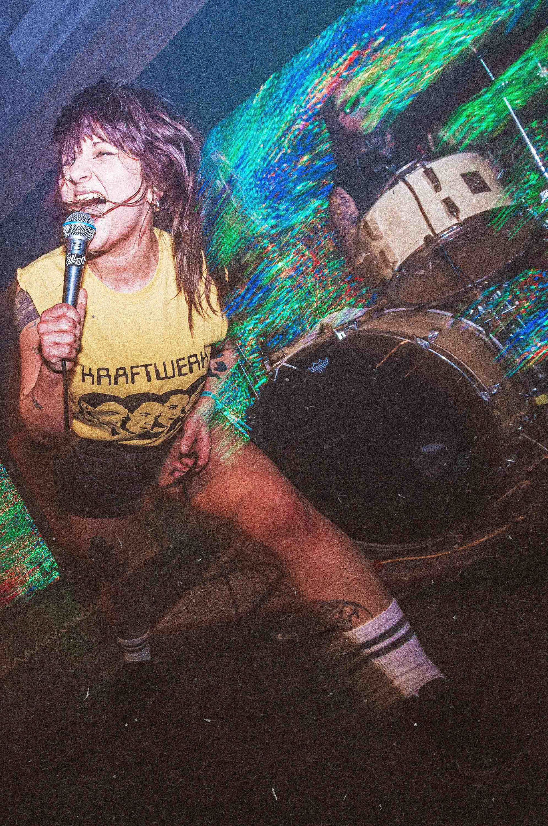 Sceneshowet var intenst og kompromisløst. Bandmedlemmerne bevægede sig konstant, sparkede, svedte og kastede sig ind i musikken med en voldsomhed, der gjorde koncerten lige så meget til en visuel oplevelse som en auditiv. Der var ingen pauser, ingen forsøg på at tale publikum op – kun et konstant pres fremad.