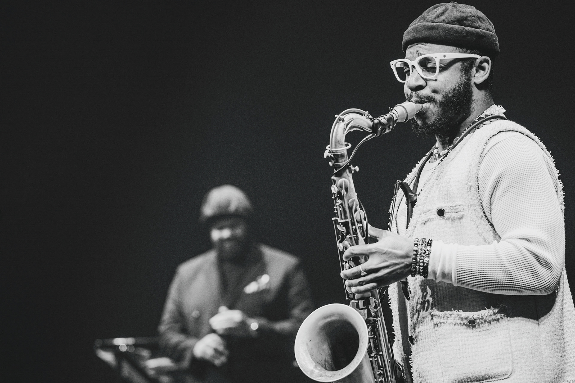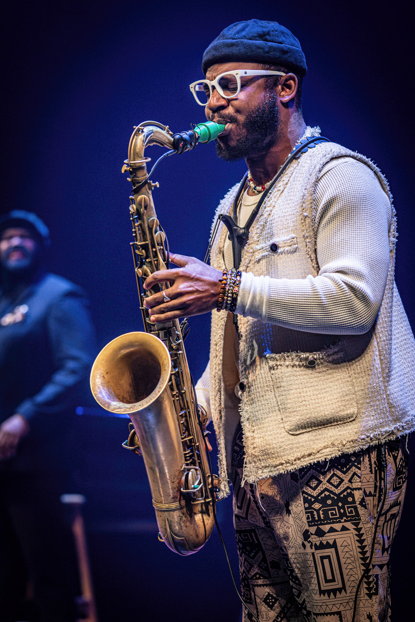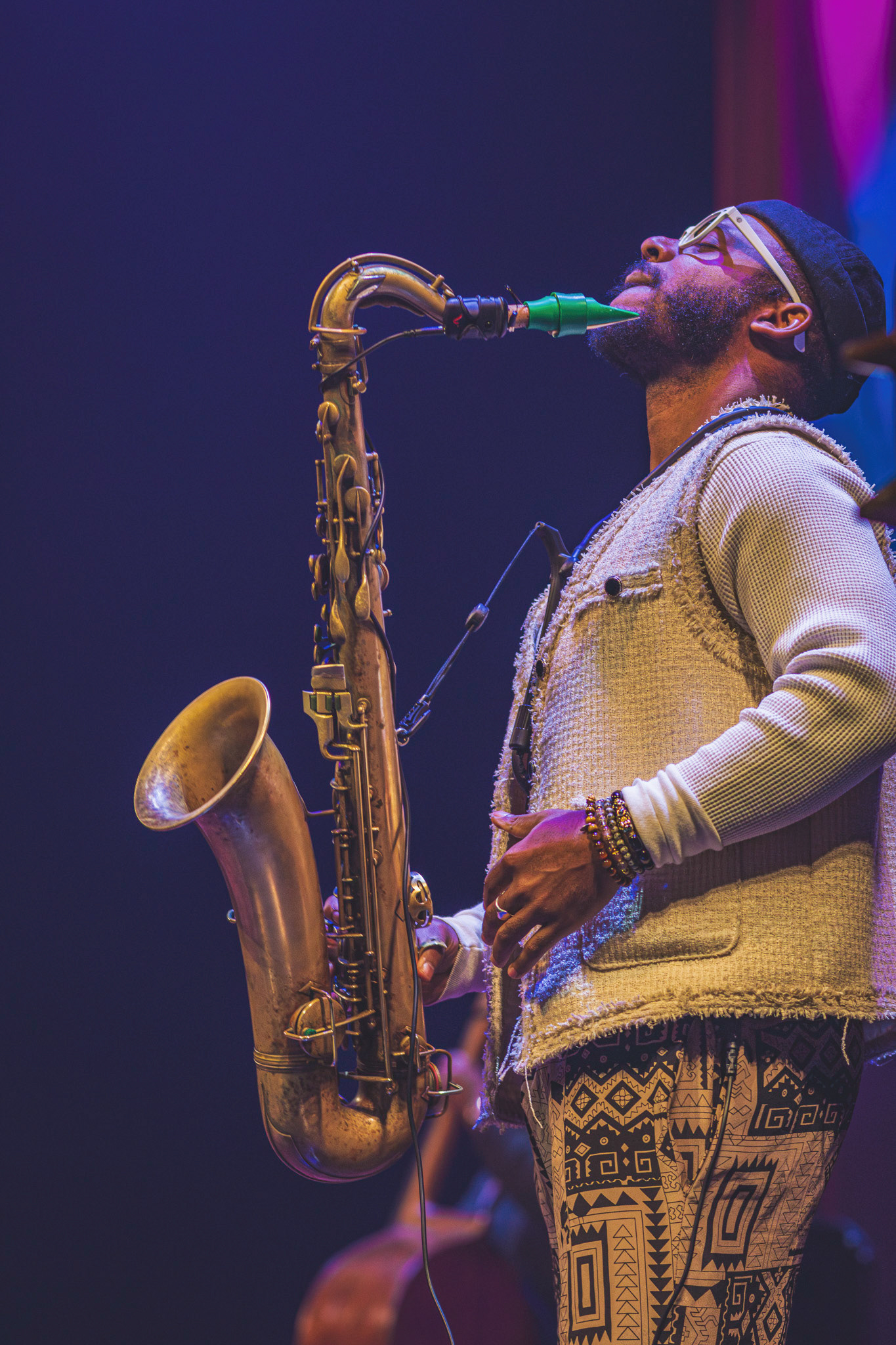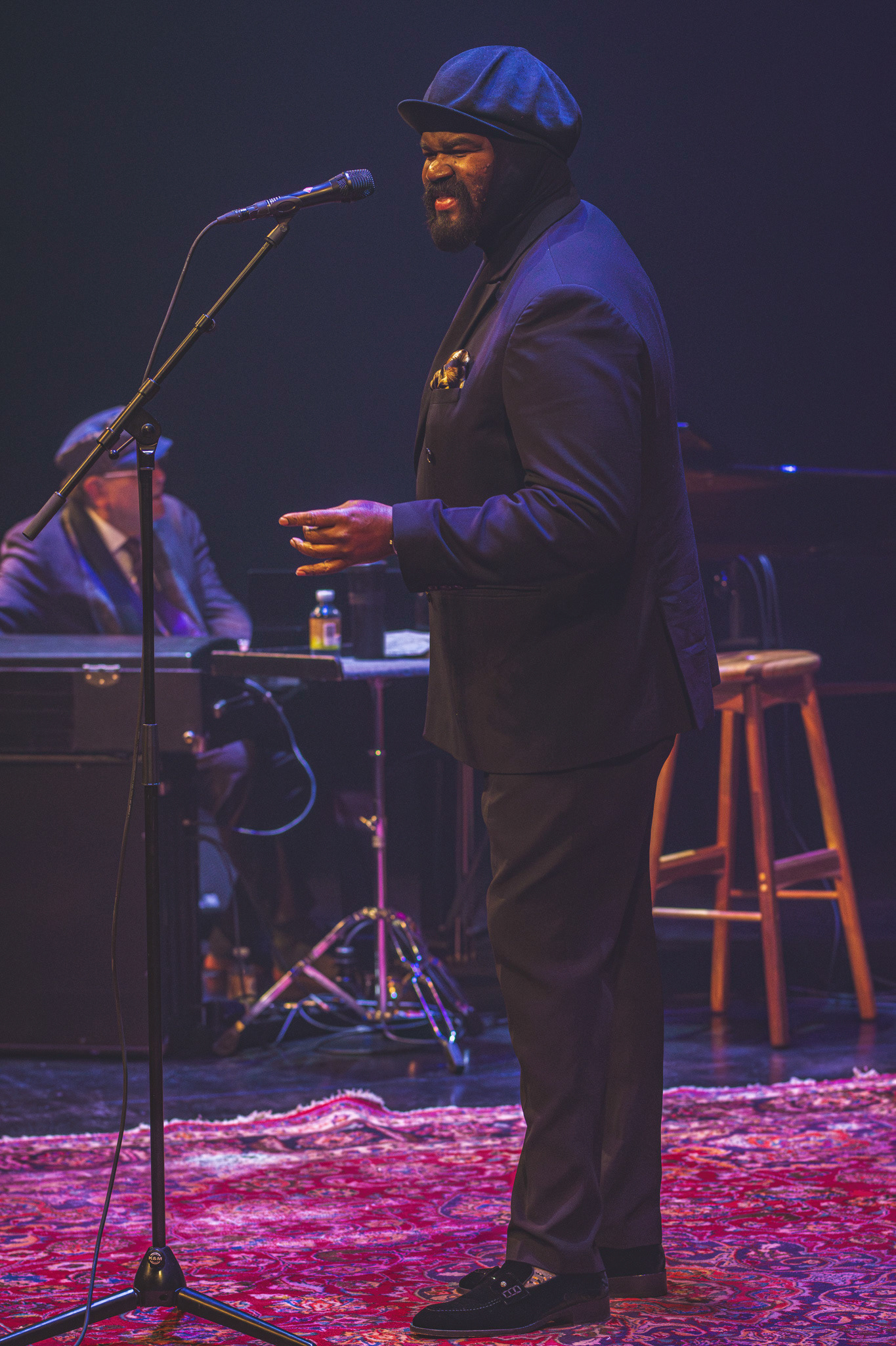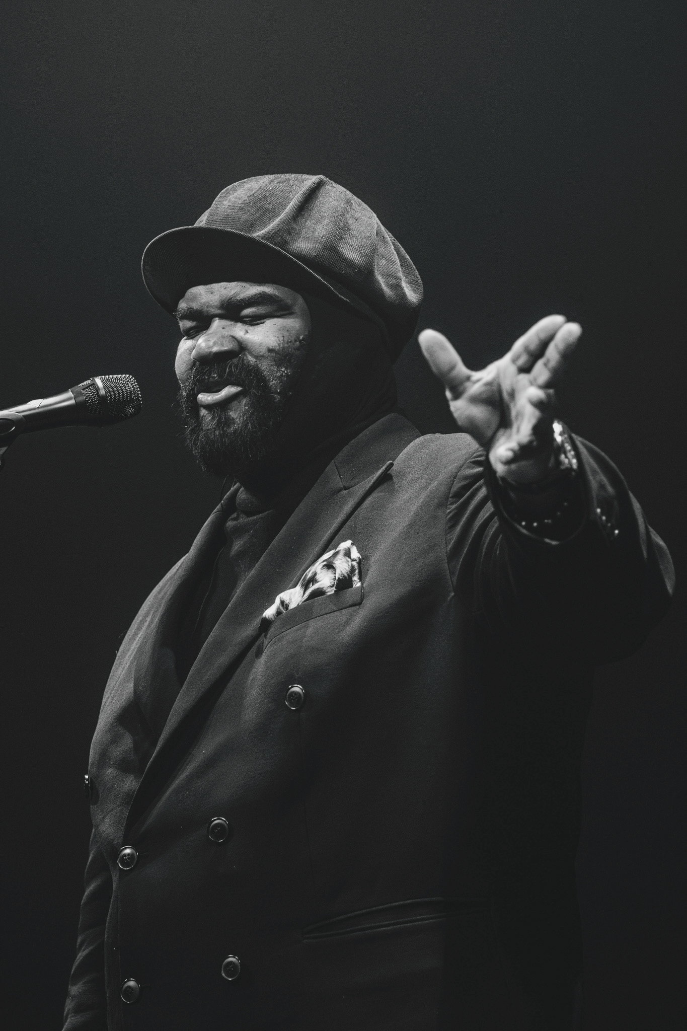 Lysdesignet var subtilt og elegant. Den mørke belysning og de varmhvide lysstråler, der fokuserede på Gregory Porter og hans band, skabte en atmosfære, hvor publikum kunne fordybe sig i musikkens magi. Lyset fremhævede det intime øjeblik, samtidig med at det understøttede den storslåede oplevelse af at være vidne til en af jazzens største stemmer i et af landets mest imponerende spillesteder.