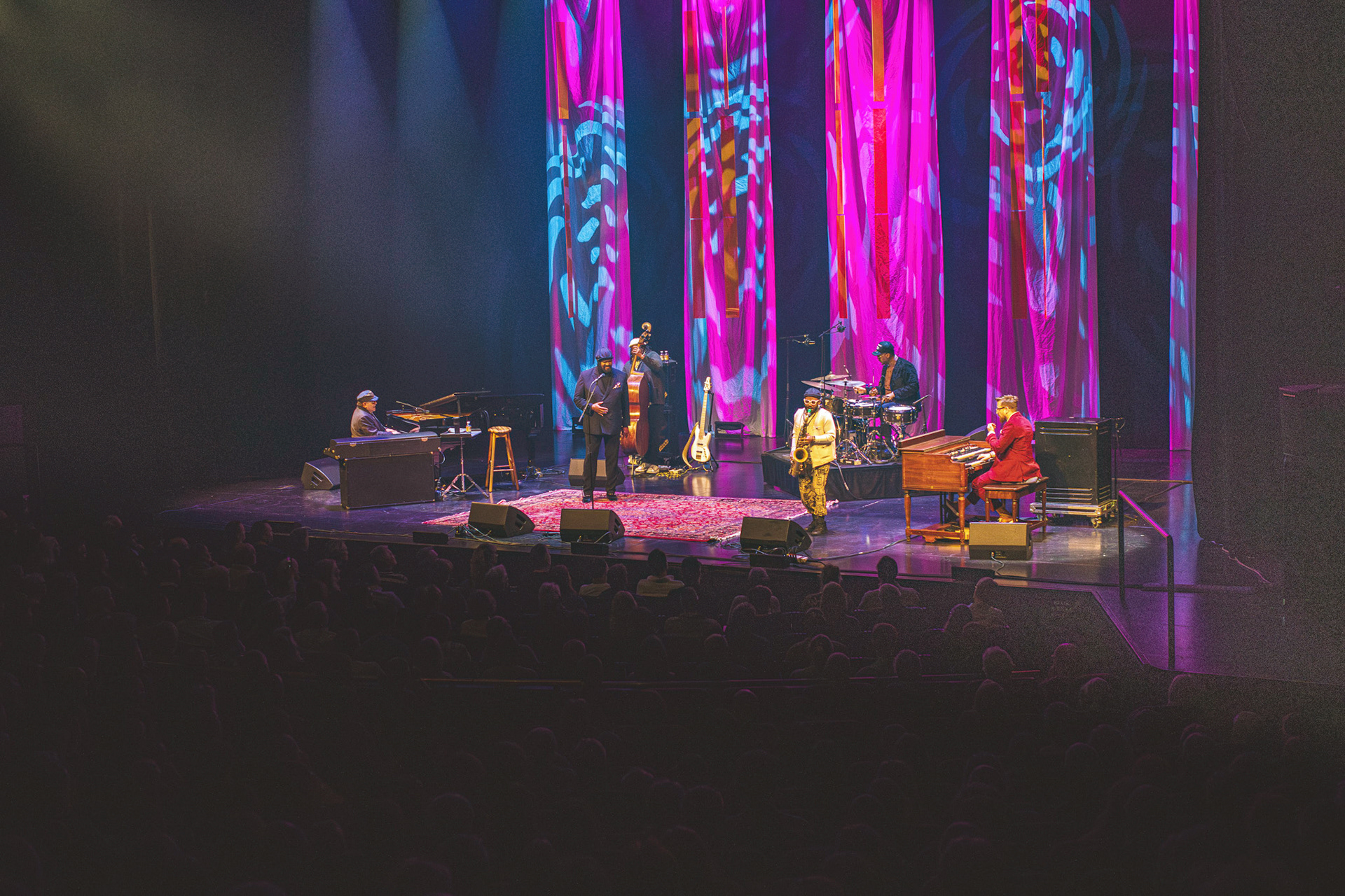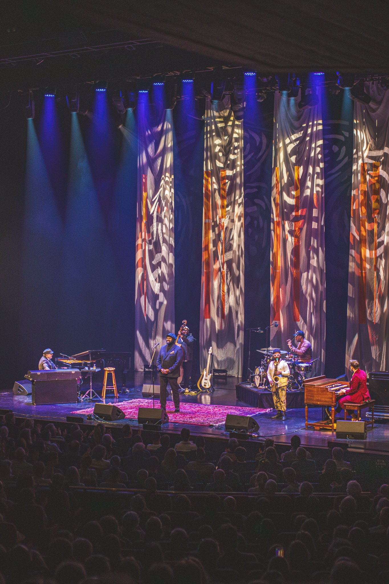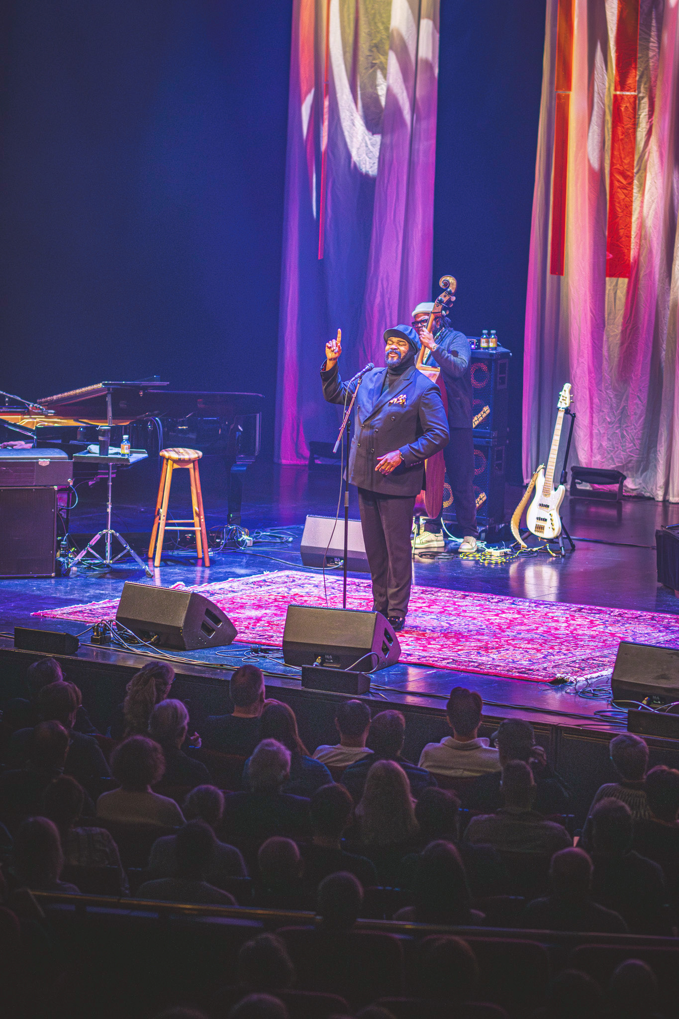 Akustikken i Store Sal er altid bemærkelsesværdig, og denne aften var ingen undtagelse. Den lyd, der blev produceret af Gregory Porter og hans band, havde en fyldig og varm kvalitet, der fyldte hele salen uden at virke overvældende. Det var et perfekt sted at nyde de rige nuancer i Porter’s stemme og bandets subtile instrumentalistiske samspil, og det var tydeligt, at både kunstneren og lyddesignere havde stor respekt for rummets naturlige akustik.