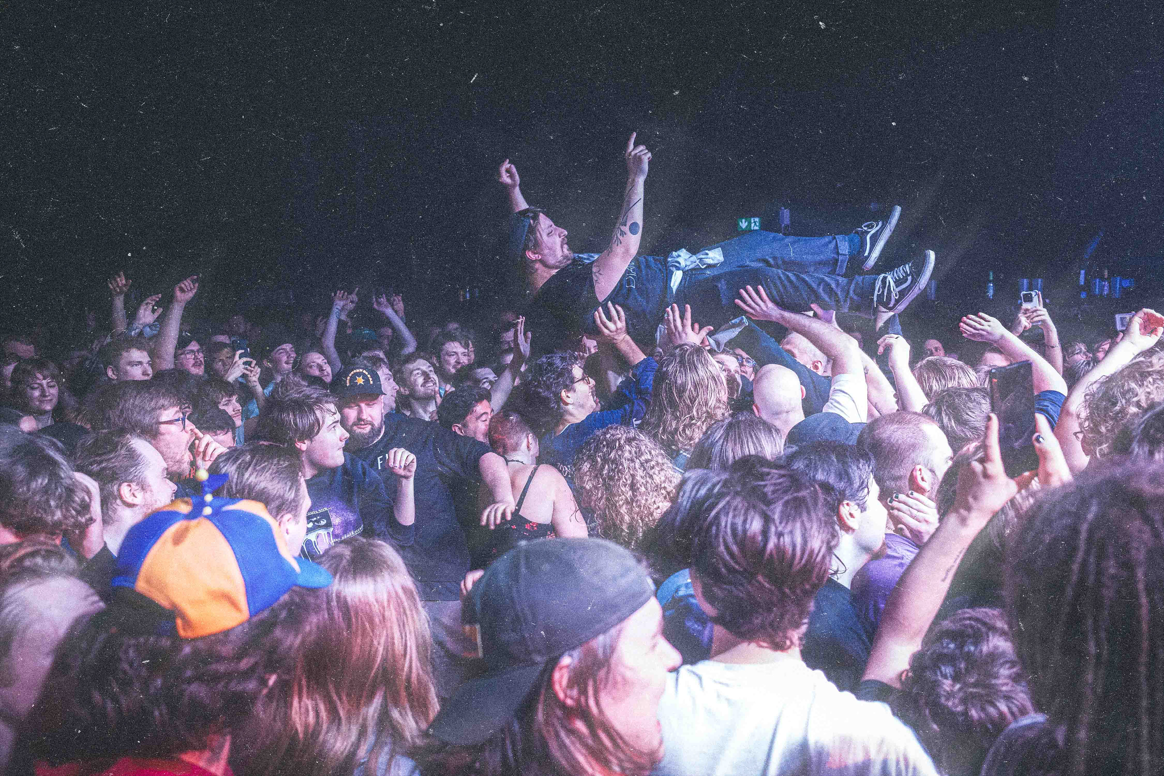 Stemningen var præcis, som den skulle være: et rum fyldt med mennesker, der skrålede med på hver eneste linje, kastede sig ud i hinanden i moshpitten og løftede hinanden op i crowd surfens fællesskab.