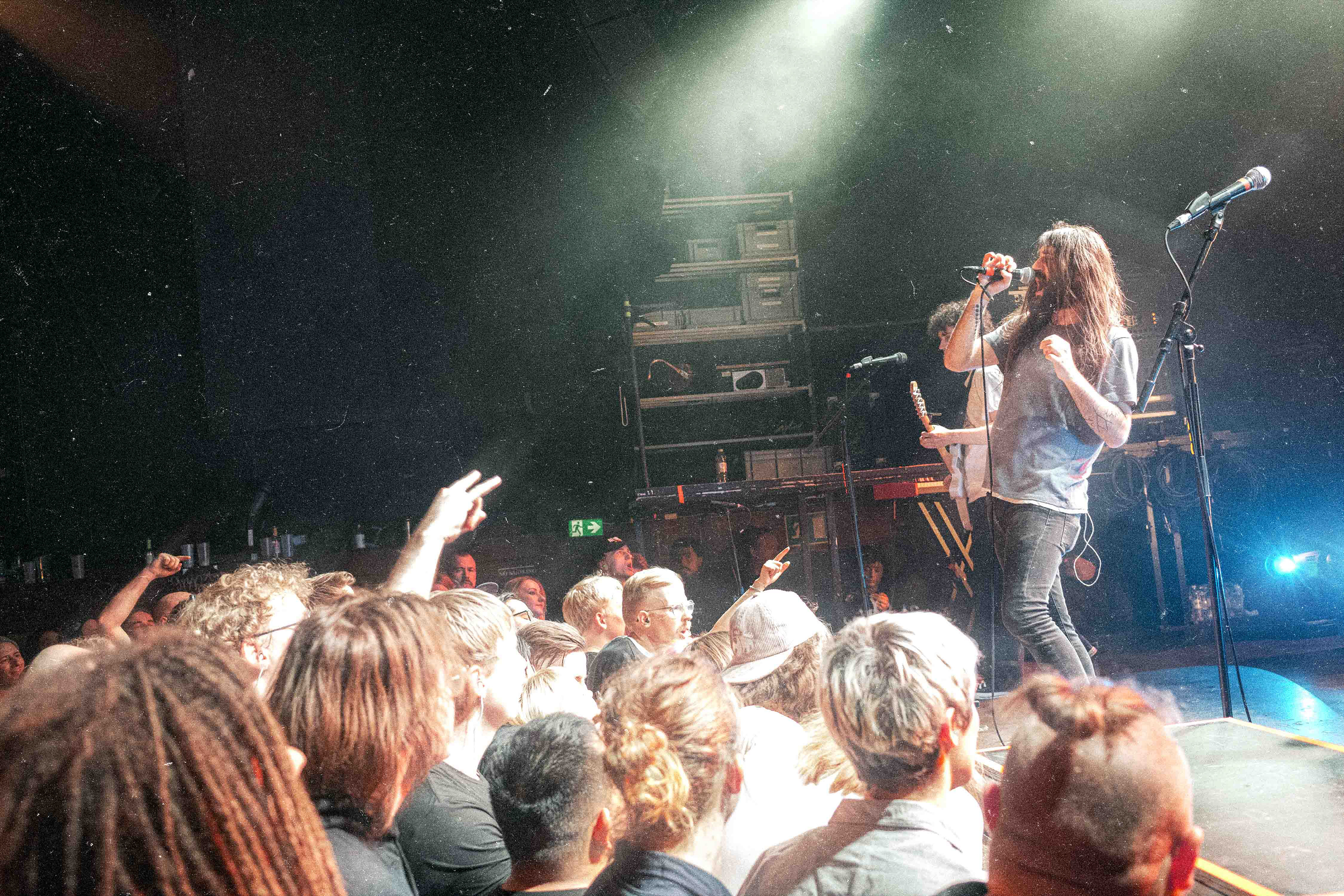 Det var bandets første koncert i Danmark, men det føltes langt fra som en forsigtig debut. Tværtimod gik de til den med en selvsikkerhed, som om de havde spillet her i årevis. Frontmandens energi var smittende, og kontakten med publikum var konstant – grin, taknemmelighed og fælles forløsning.