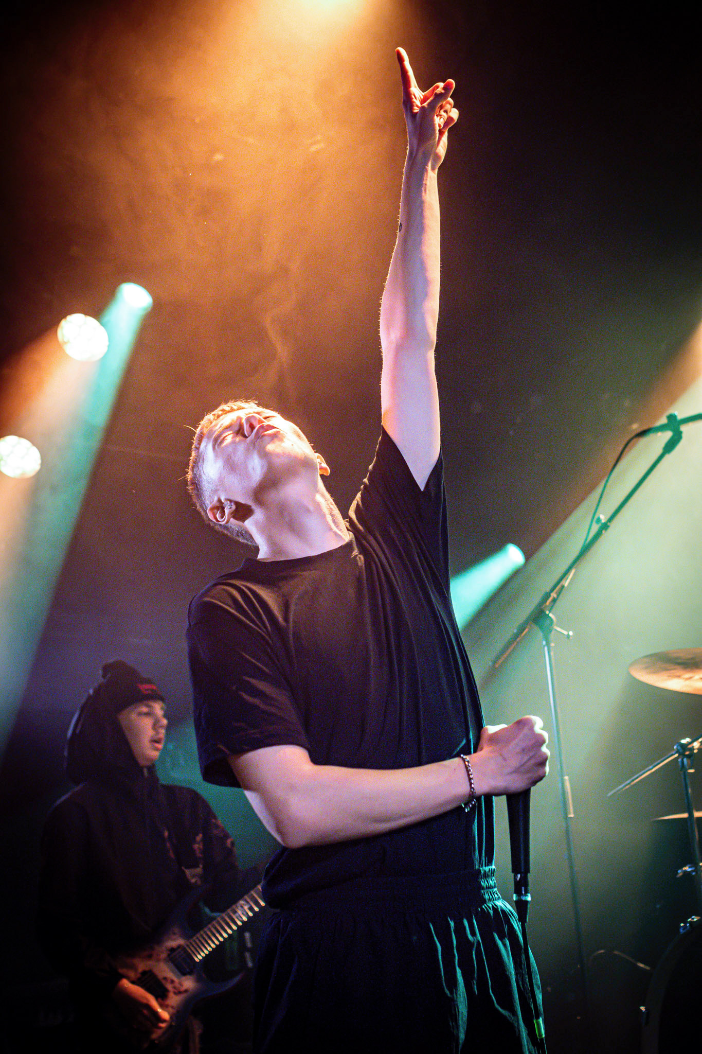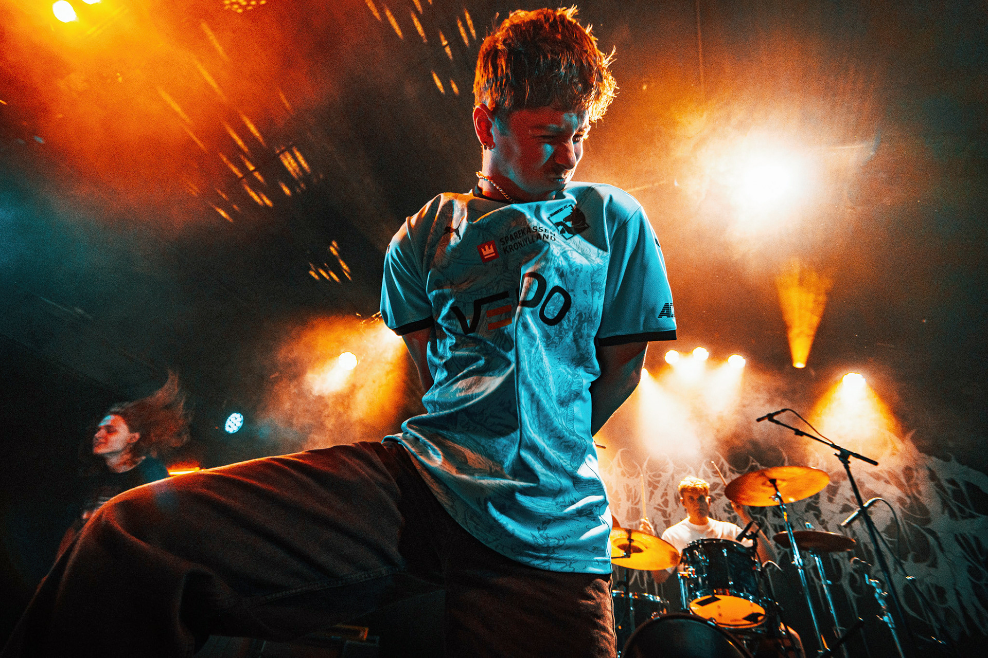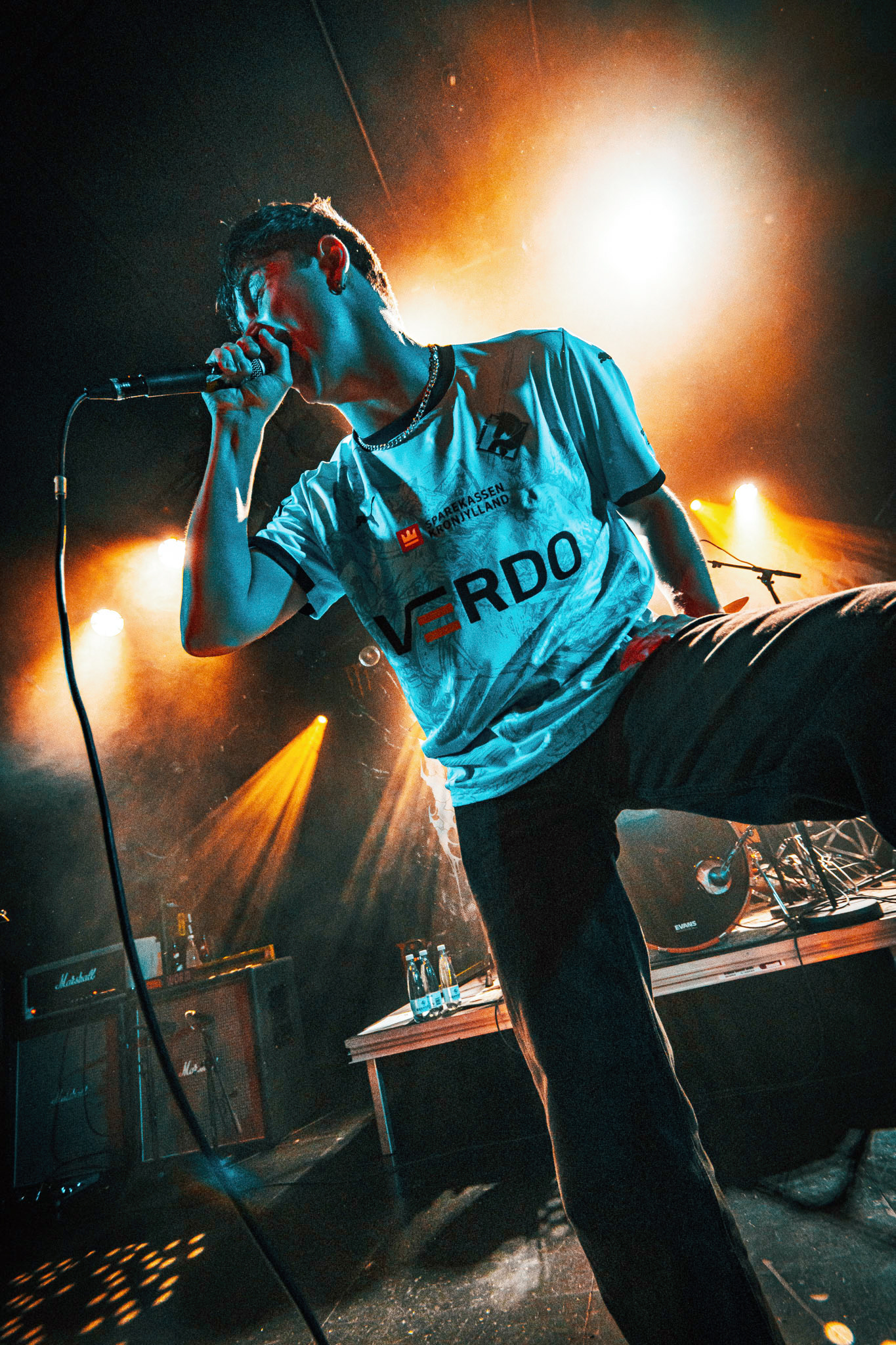Neckbreakker behøvede ikke at bruge meget tid på at minde publikum om, at vi altså havde gang i “fe’ dø’” (fæ dø’), og stemningen taget i betragtning var det svært at være skuffet. For salen kogte, og publikum slugte hvert sekund. Øllene flød, og de mange metalhoveder i pitten var mindst lige så tørstige efter breakdowns som efter kolde bajere. Højdepunktet for en lokal sjæl som mig var dog uden tvivl, da forsangeren Christopher trådte på scenen iført en ægte Randers FC-trøje – et smukt syn og et klart signal om, at Randers-stoltheden lever i bedste velgående. I Randers tager vi selvfølgelig gerne ejerskab og vil vedstå at Neckbreakker er et Randrusiansk band - altså, Christopher er jo fra Ulstrup!