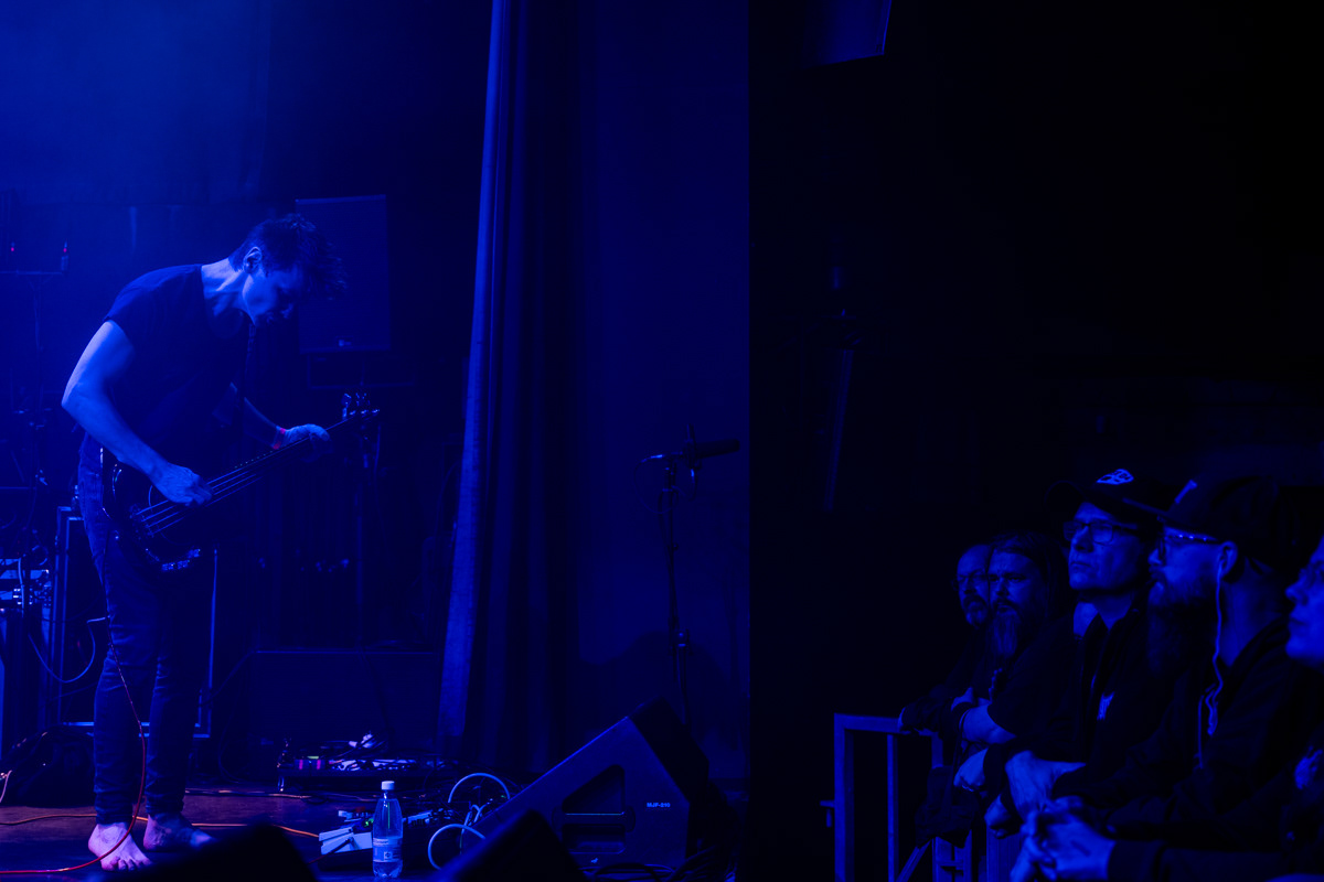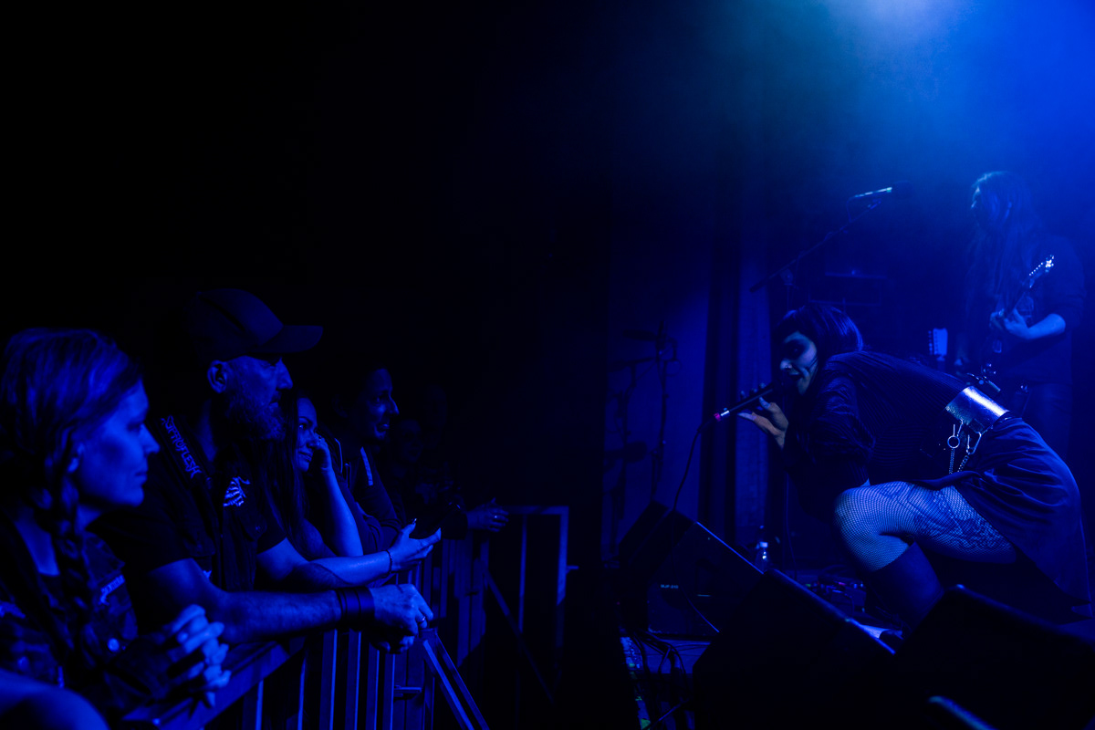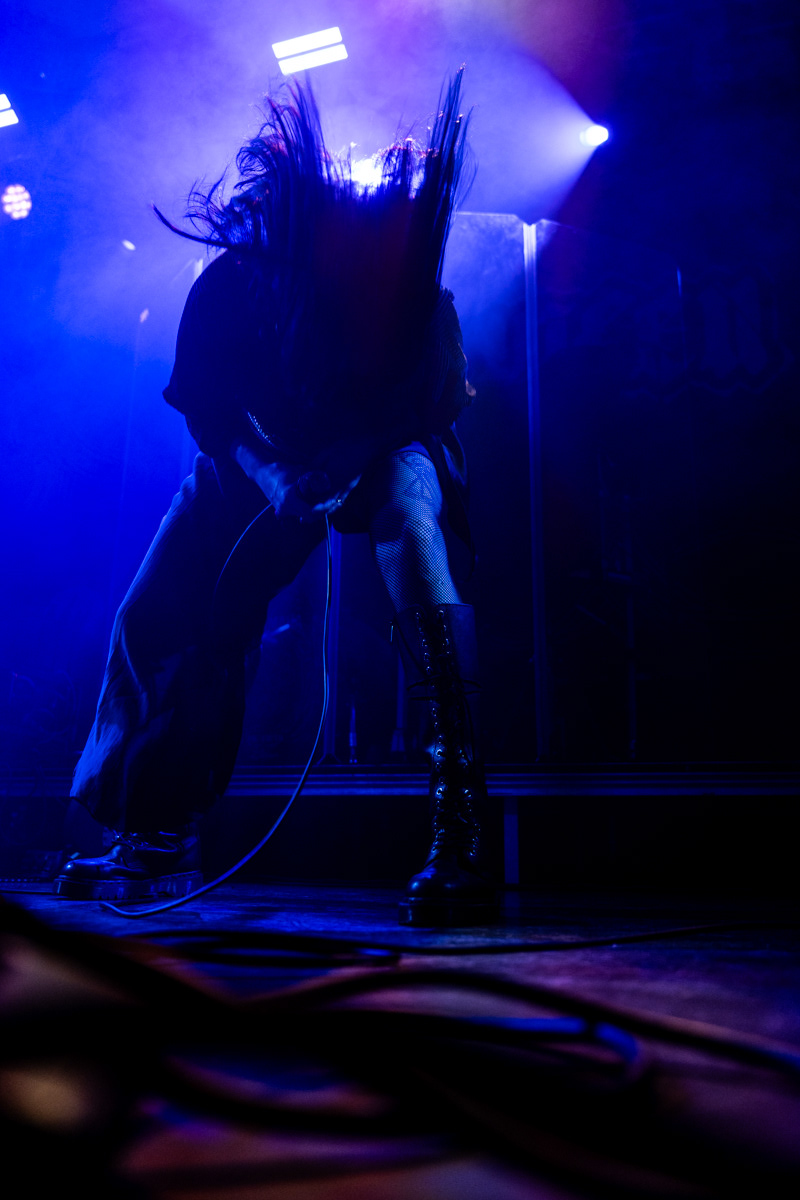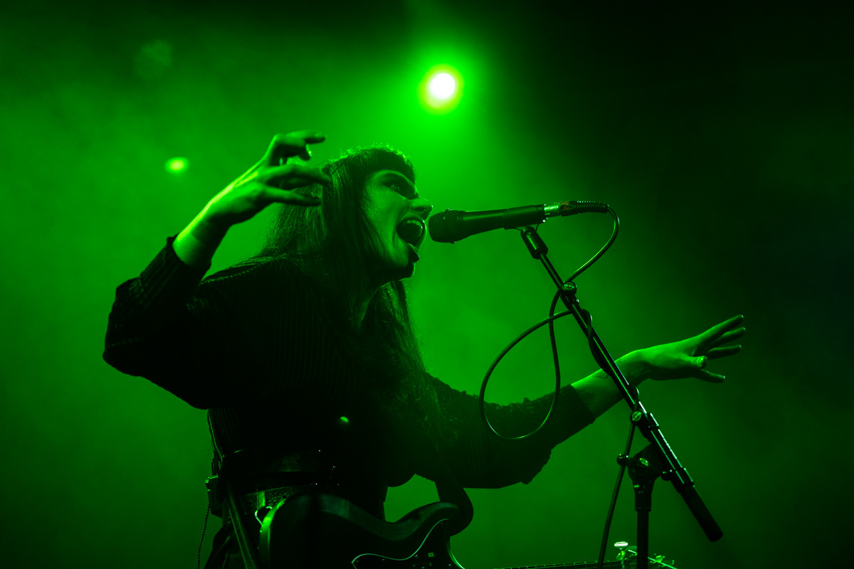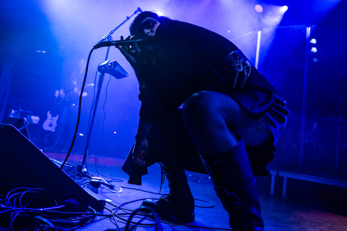Første navn på scenen var det skotske Cwfen, et band der udfolder en atmosfærisk blanding af goth, doom og post-punk med en sikker sans for det teatralske. Deres sæt tjente først og fremmest som en stemningsskaber for aftenen og fik det udsolgte VoxHall til at falde ind i koncertens mørke tone. Sangerinden bar en sort maske, og med stor kropslig udstråling leverede hun vokal, der pendlede mellem poetisk melankoli og rå dramatik – en passende kraftanstrengelse til at indlede en aften i doomens tegn. Selvom numrene til tider føltes en smule ubemærkede, var der ingen tvivl om, at Cwfen lagde et solidt grundlag for de efterfølgende kunstnere.