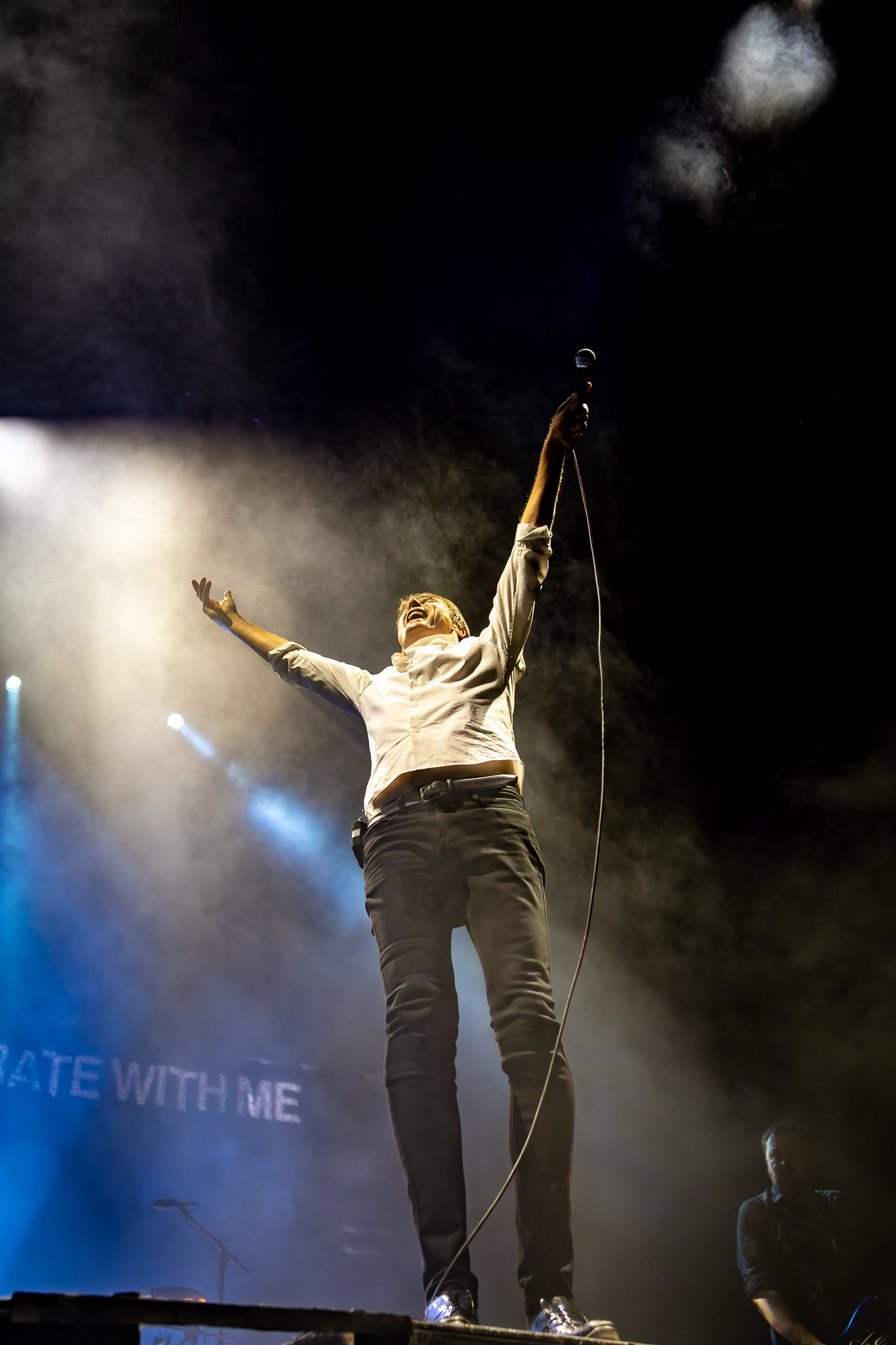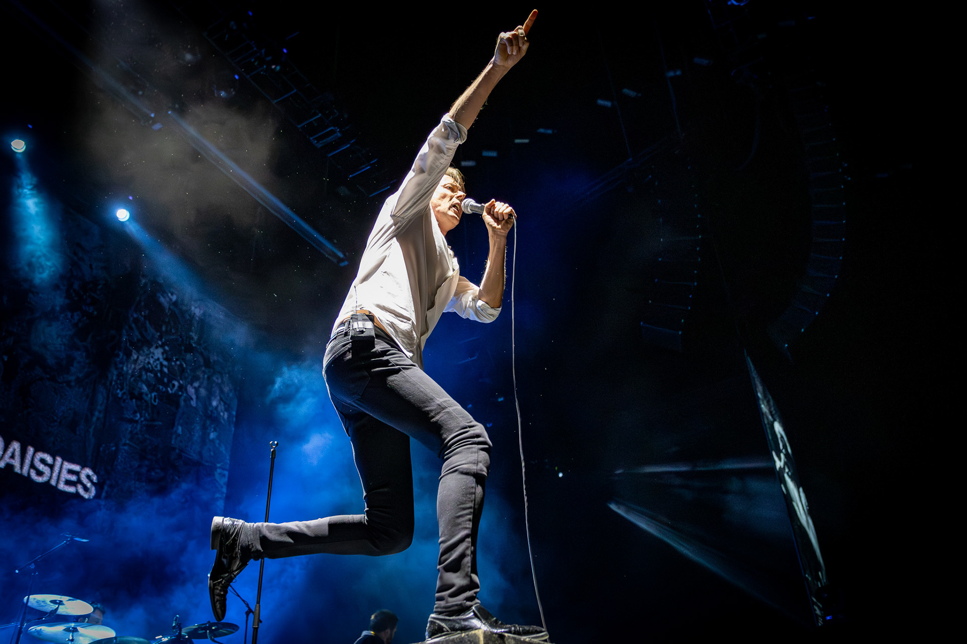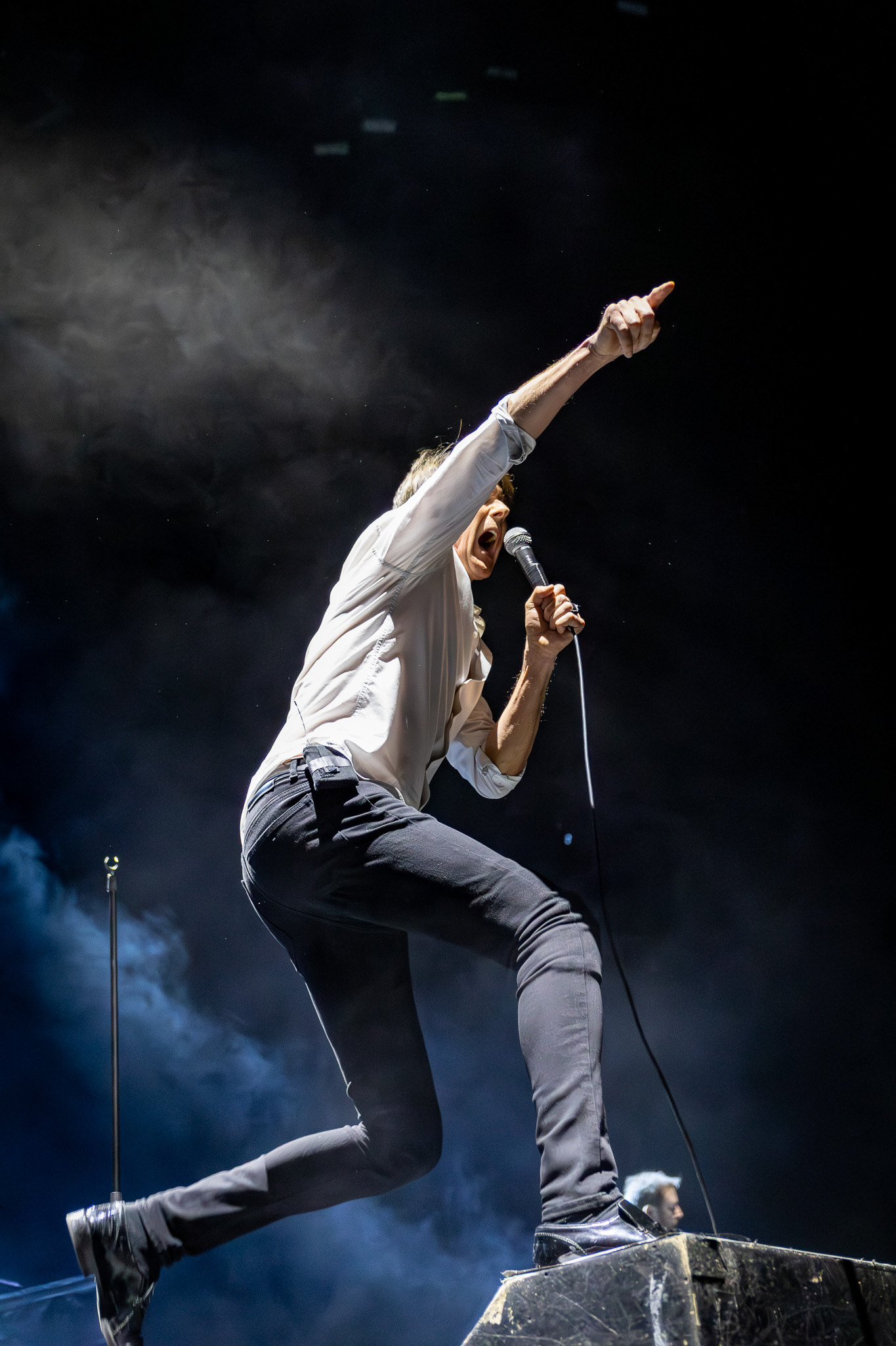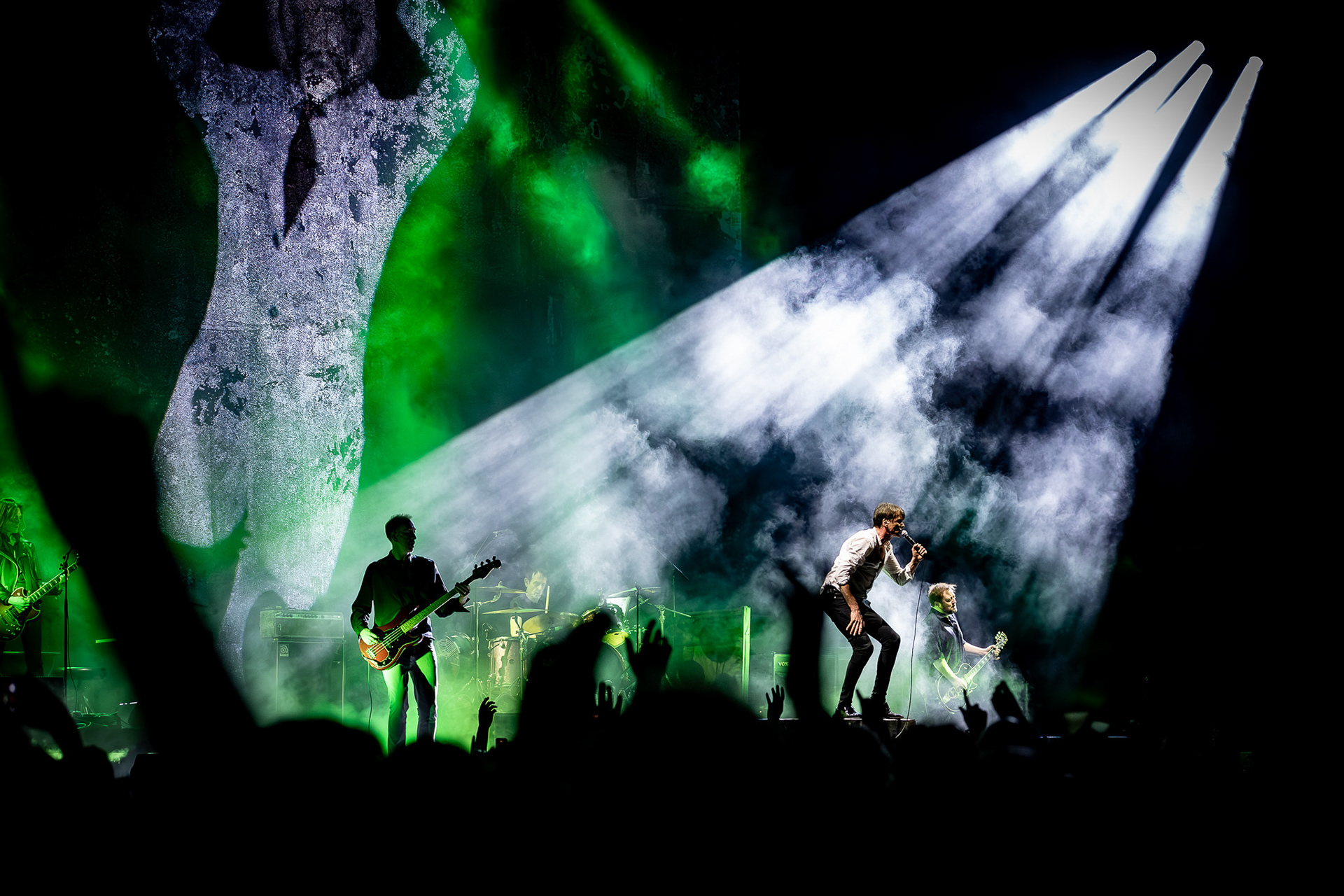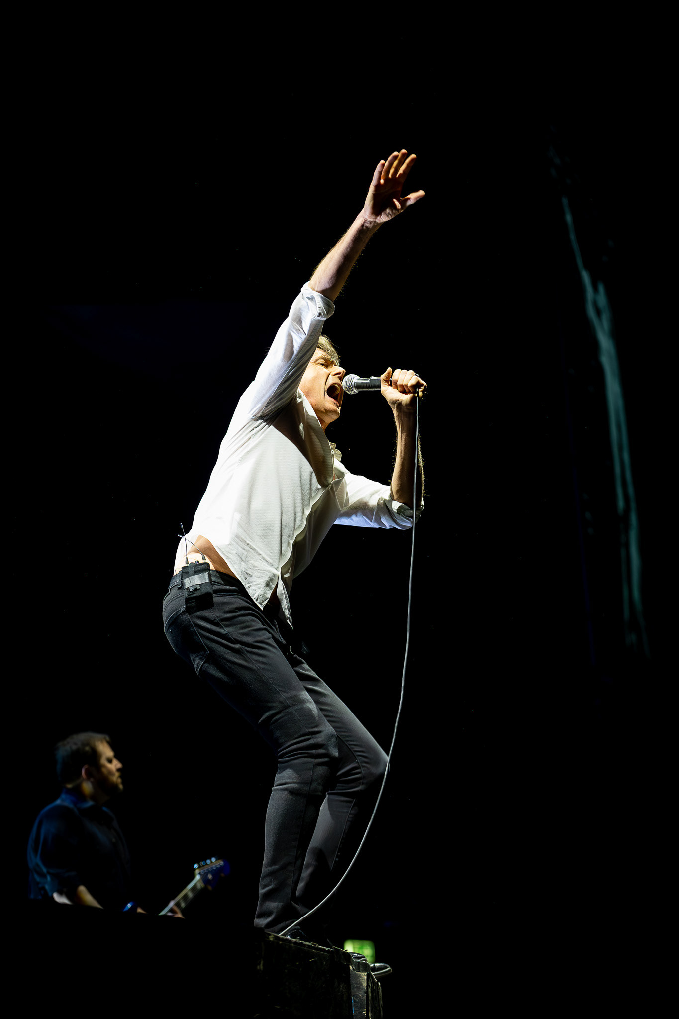 Bandet bag ham leverede samtidig et stramt og energisk backingtrack, hvor især guitarerne skar igennem arenaens rum.